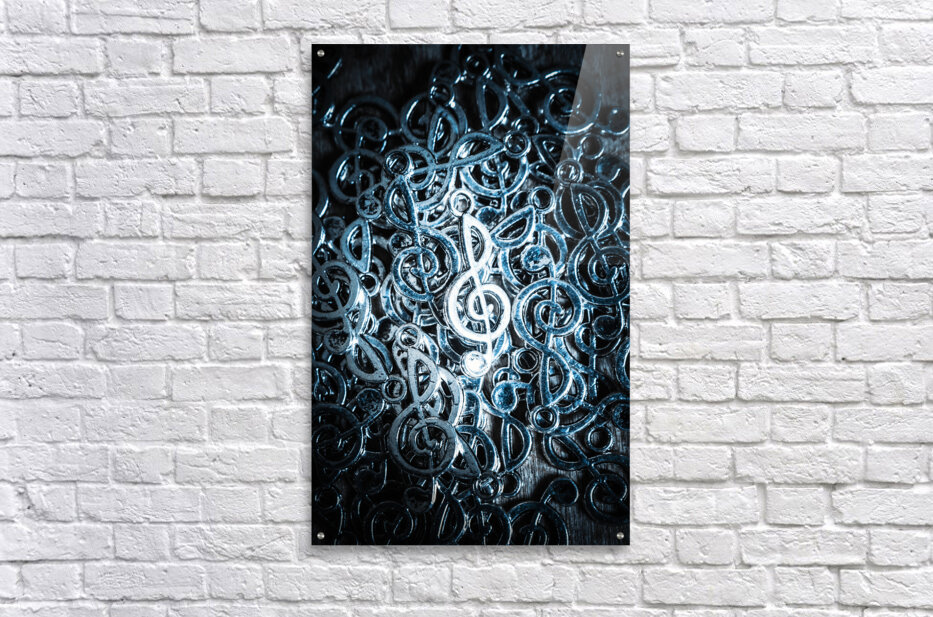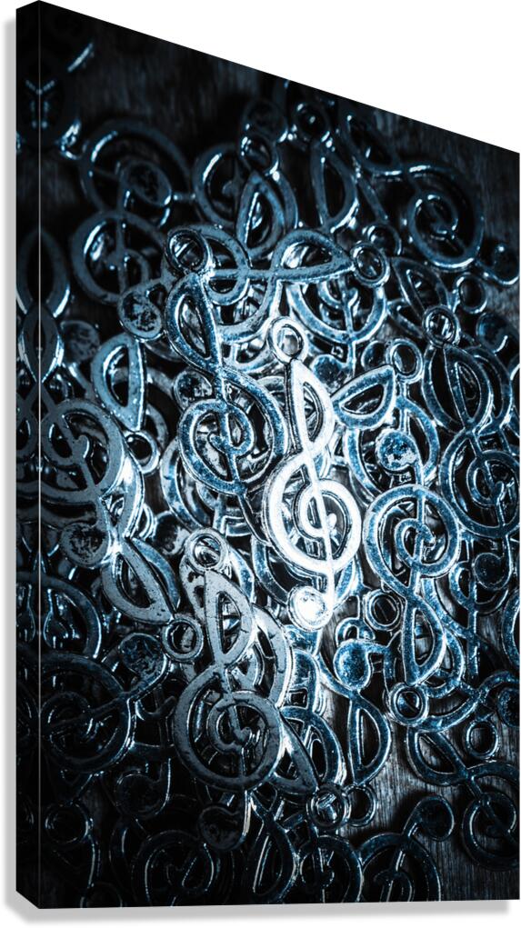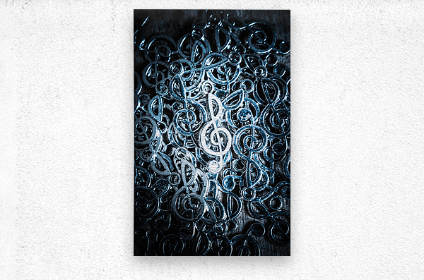 Musical sound still life art on a shining treble clef lit by a frequency of audio precision. Hitting key harmonics