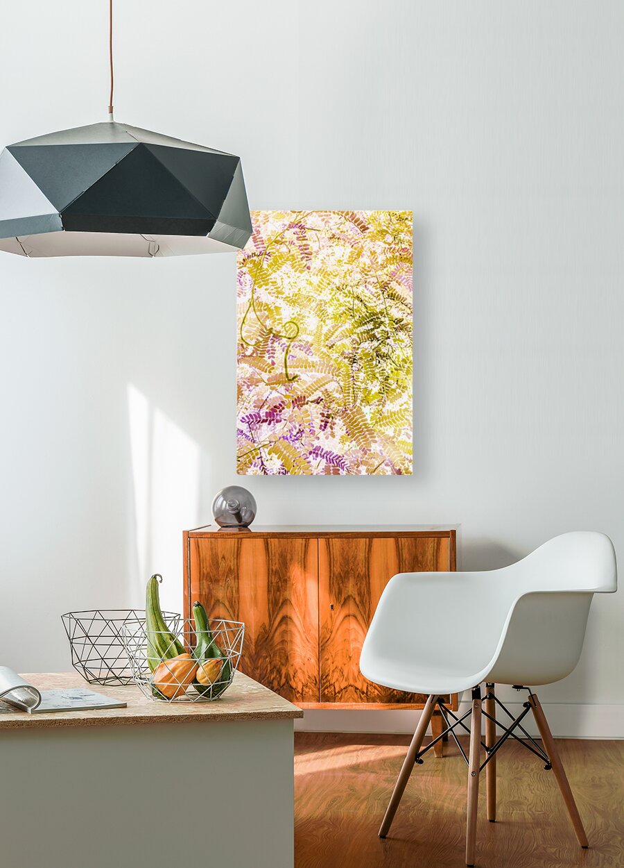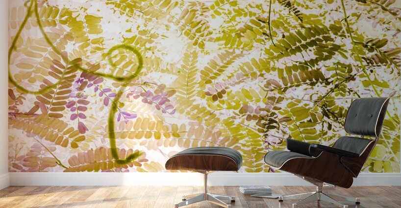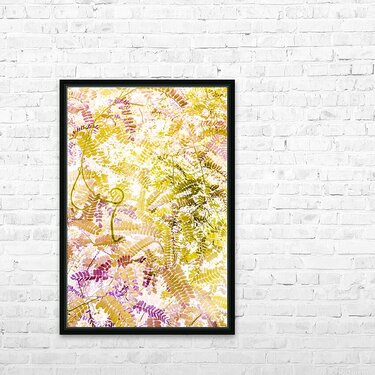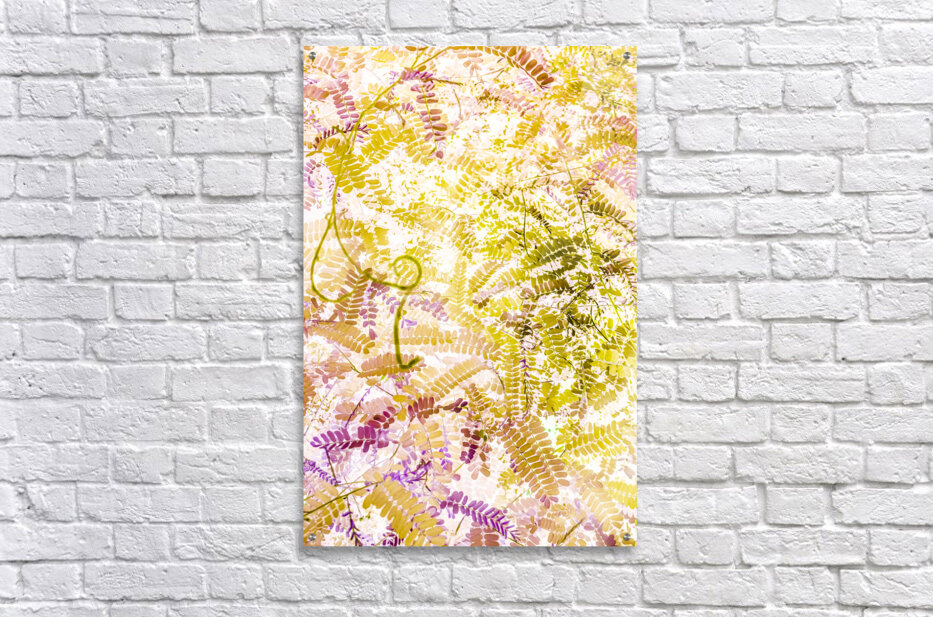 Colourful abstract artwork on a mixed up shrubbery of ferny fields in creative composition. Tango and twine