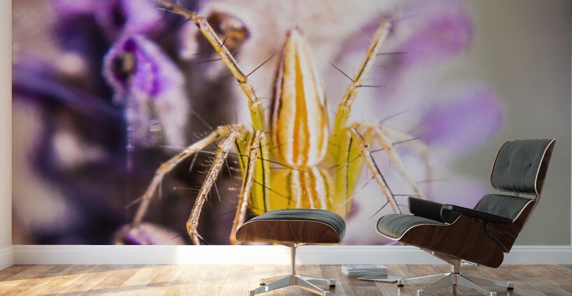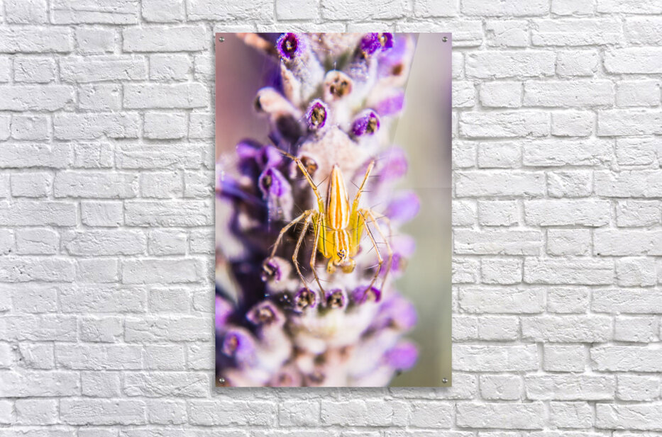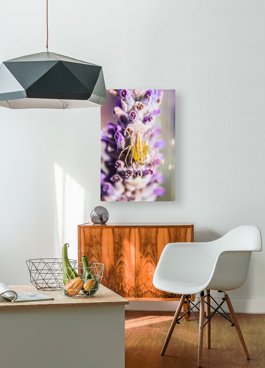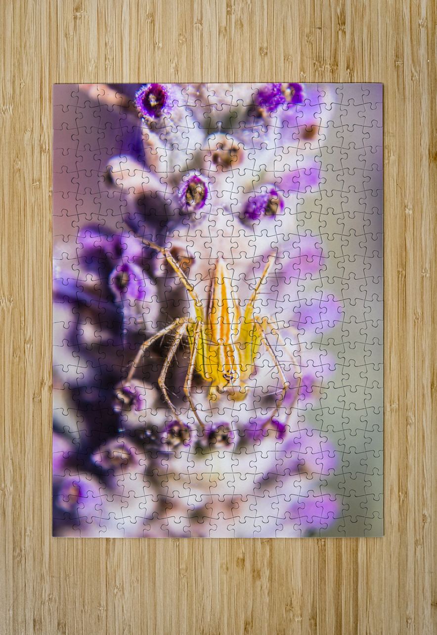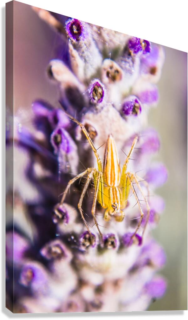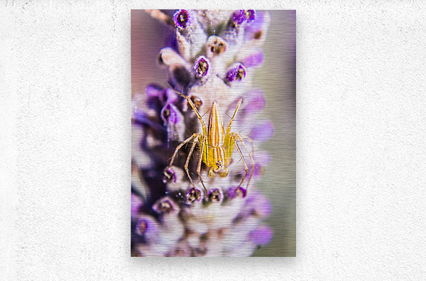 Macro insect artwork on a tiny Jumping Spider Mopsus Mormon on lavender head