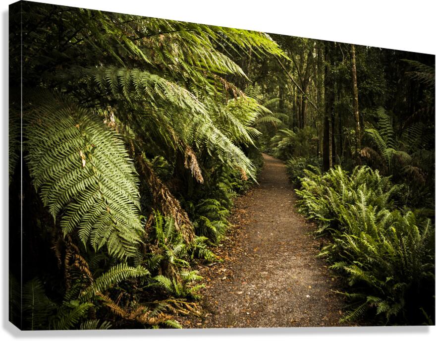 Get this artwork "Lush green Tasmanian forest trail in Strahan" in a framed print.