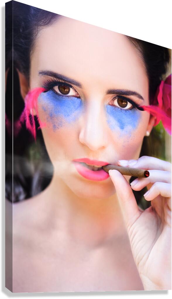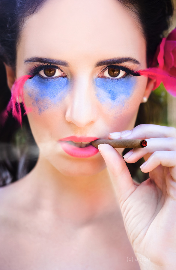 Plumes of smoke set the scene of cherry cigars and makeup gleams edgy fashion in a glance her name was Cherry elegance