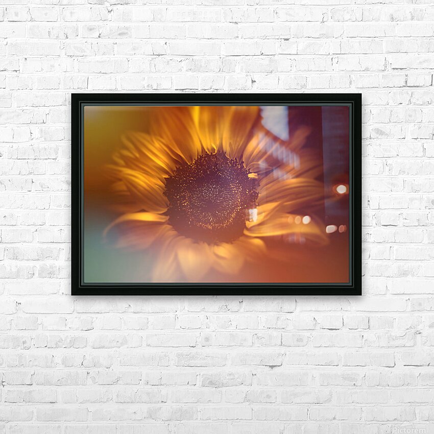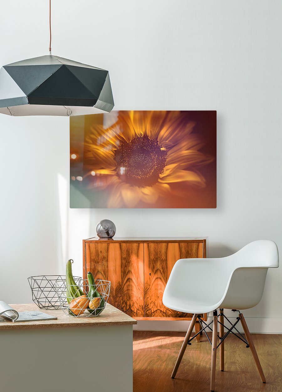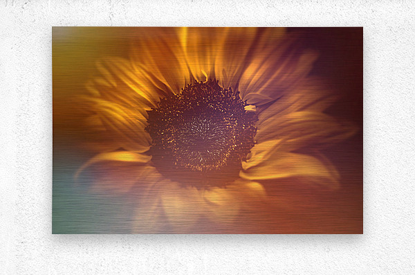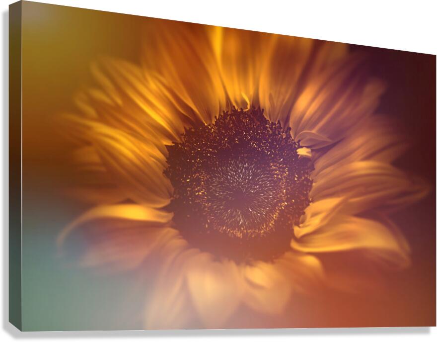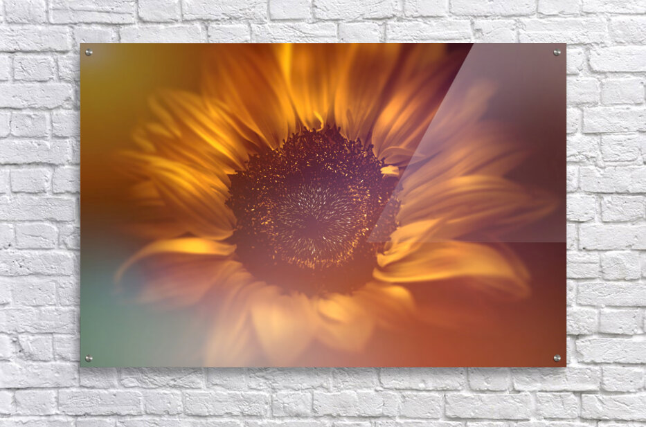 Retro pop art photography on a macro sunflower flared in summery sunlight