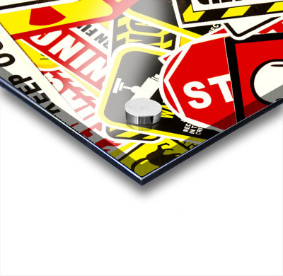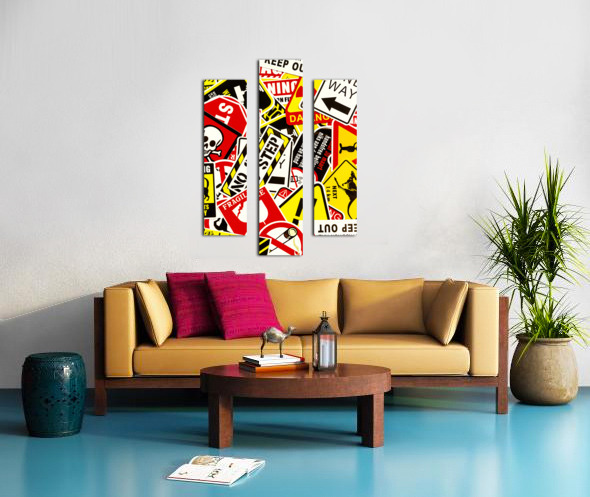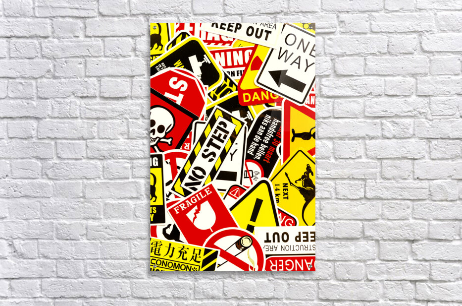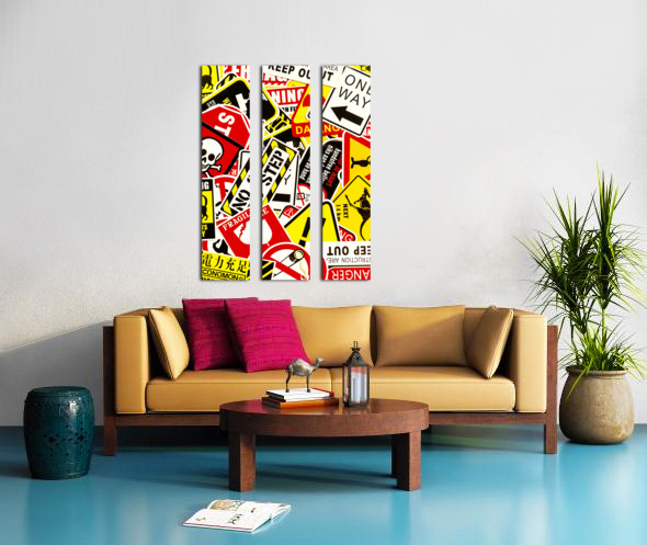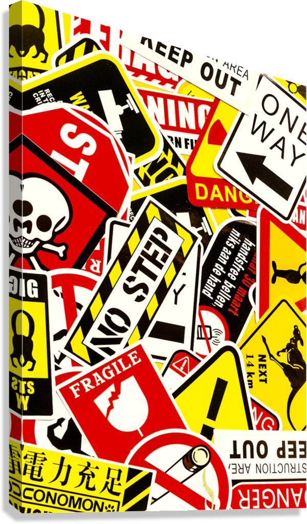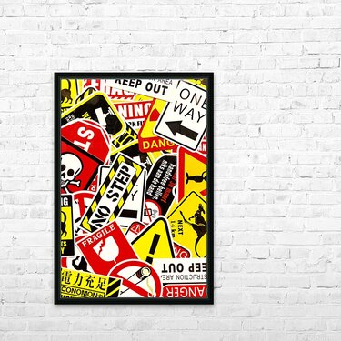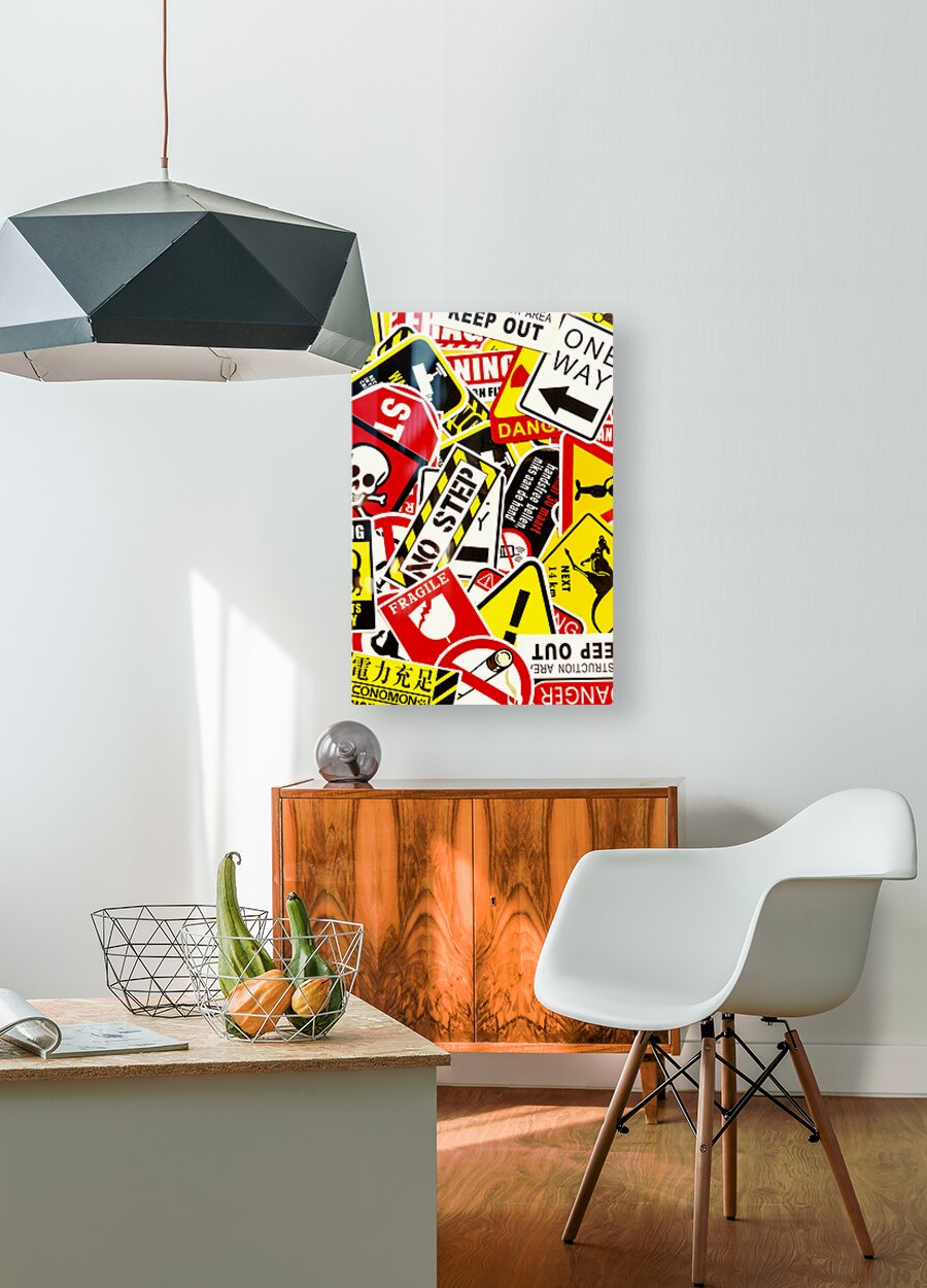 Colorful urban design on a mix-up of road signals from street sign city