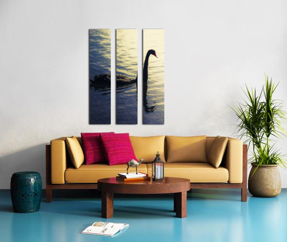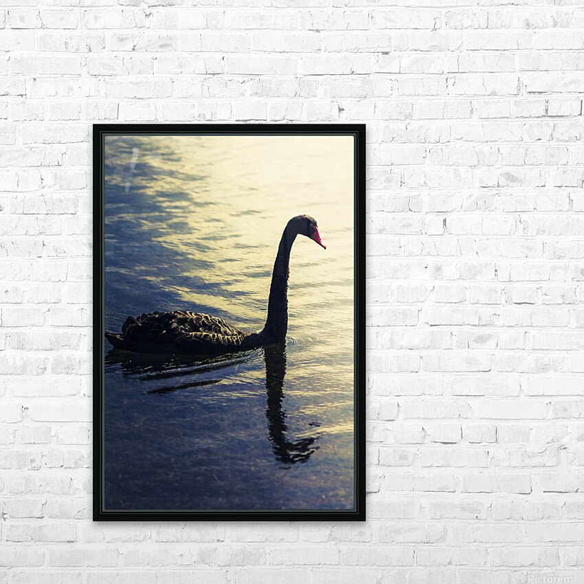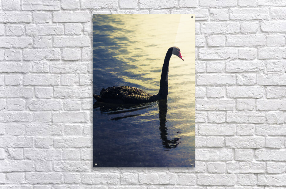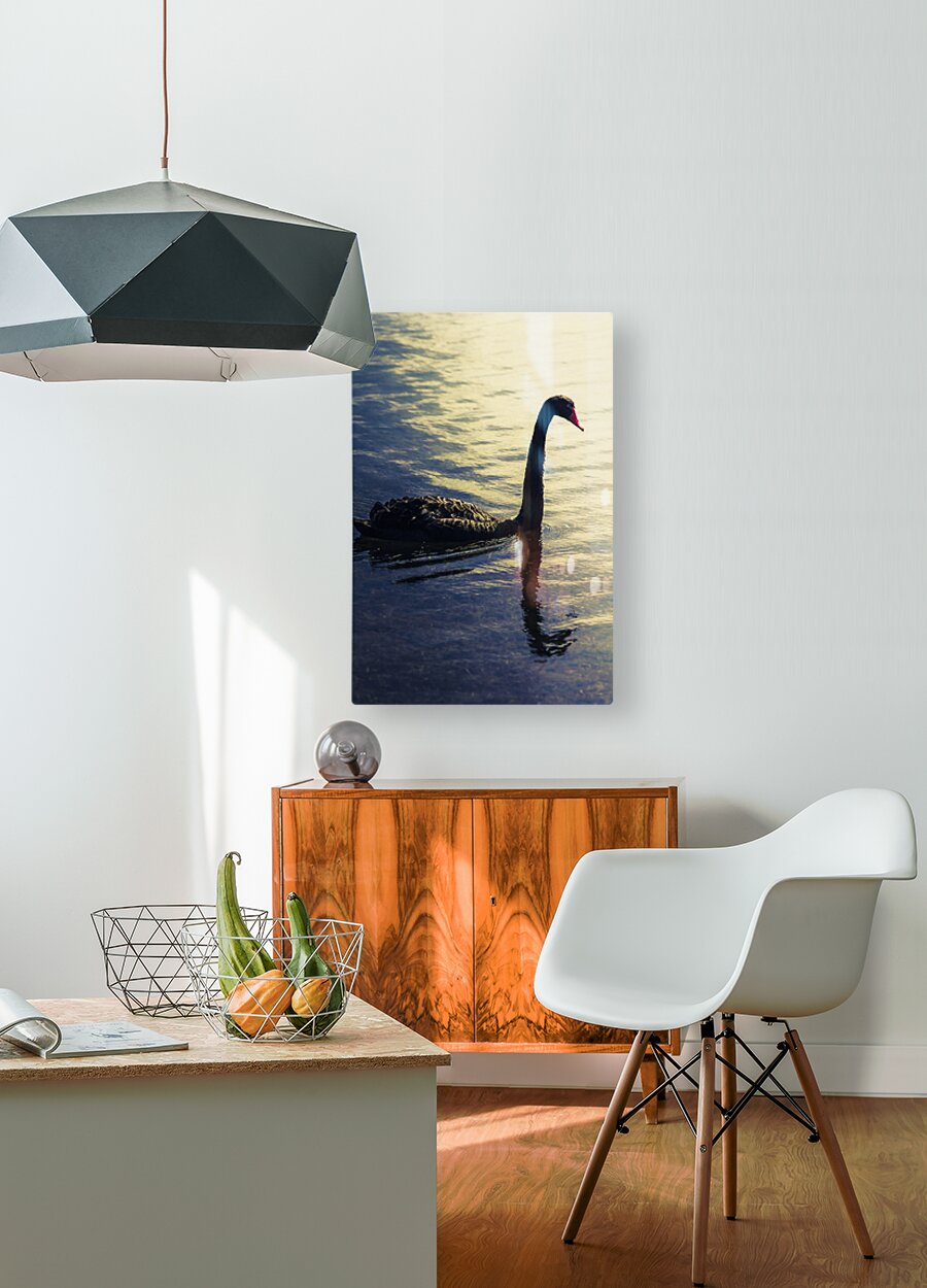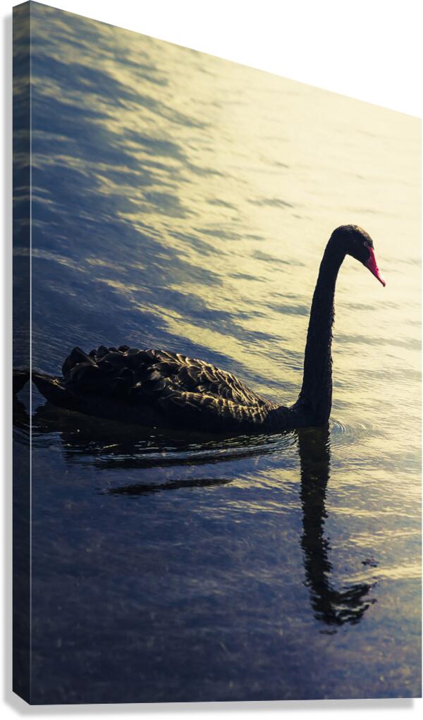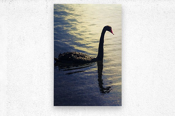 Creative nature artwork on a sunset swan silhouetted against blue waters. Lake Samsonvale Queensland Australia