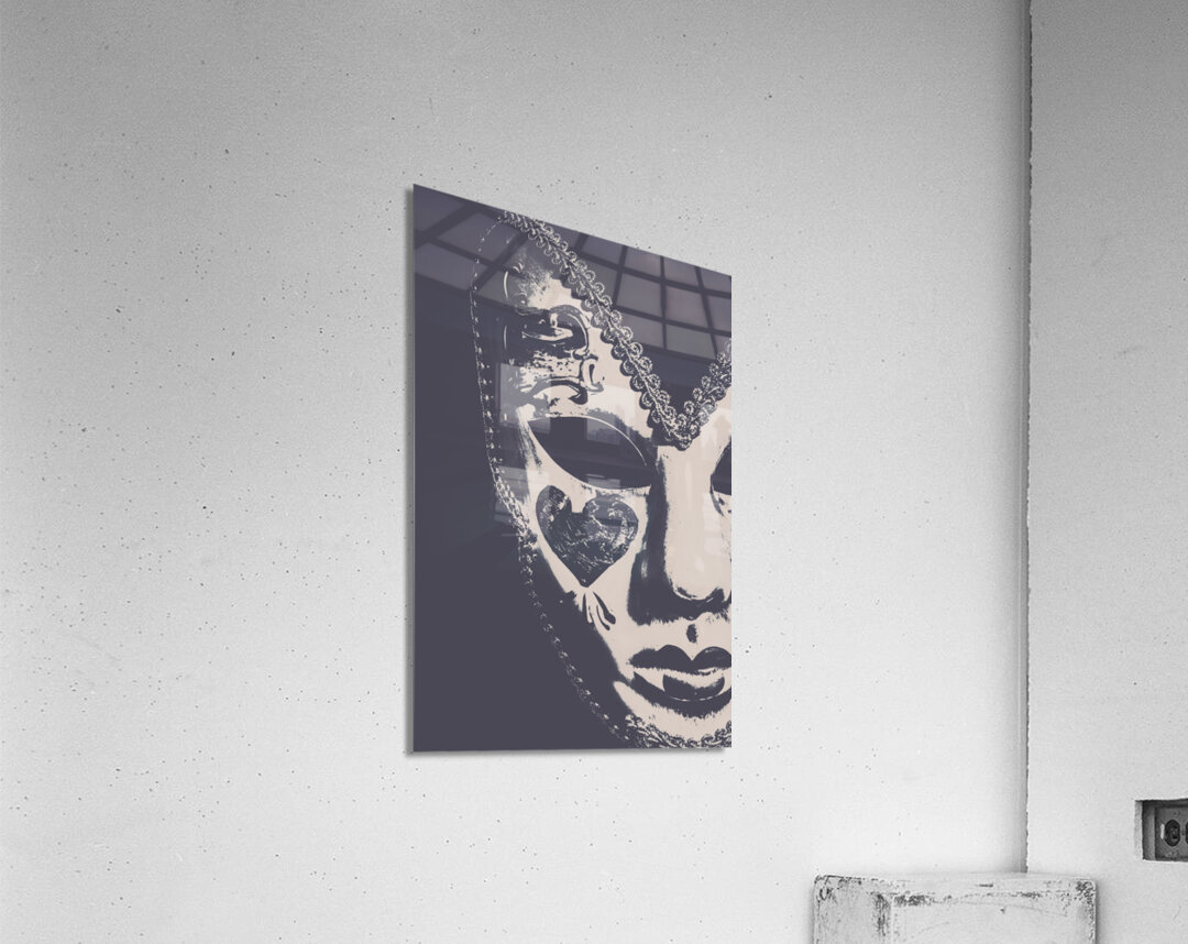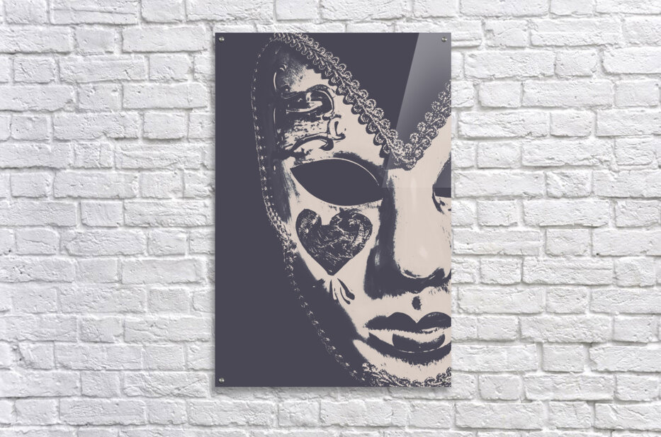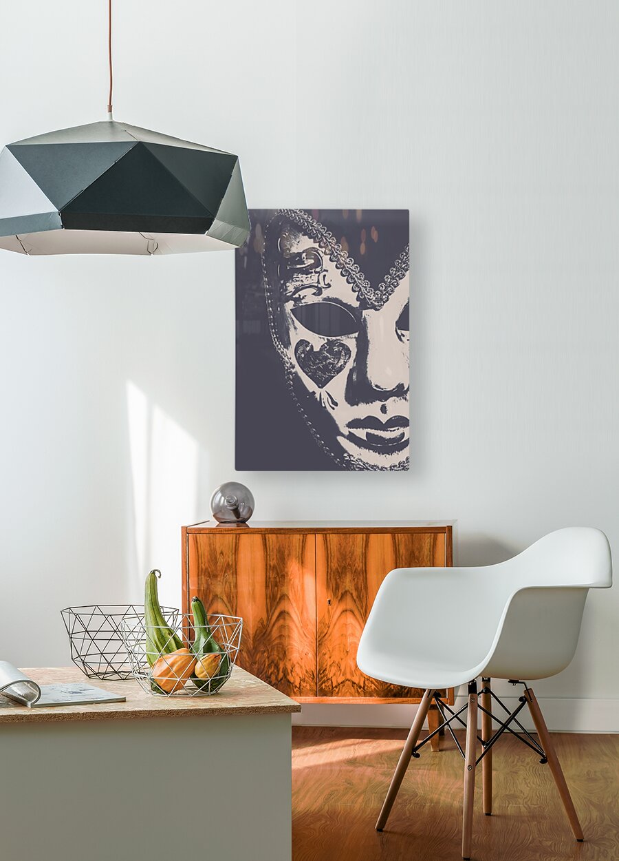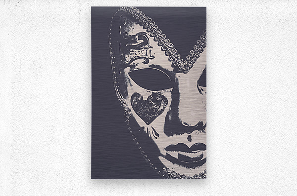 Ornate antique art on a face mask of theatrical disguise captured in emotive closeup. Midnight frill
