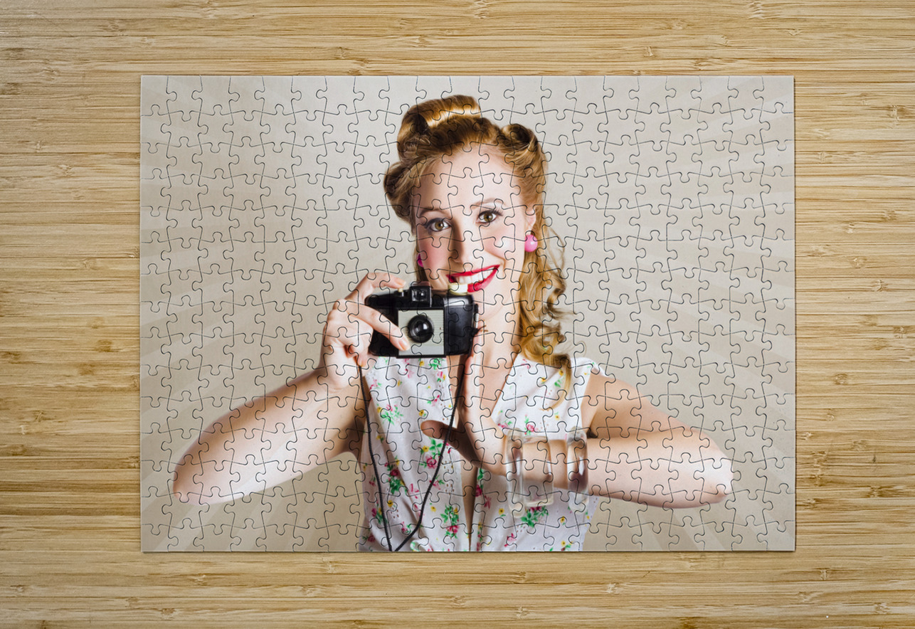 Beautiful Woman Photographer Holding Retro Camera Jorgo Puzzle printing