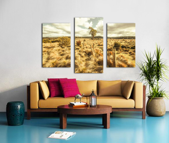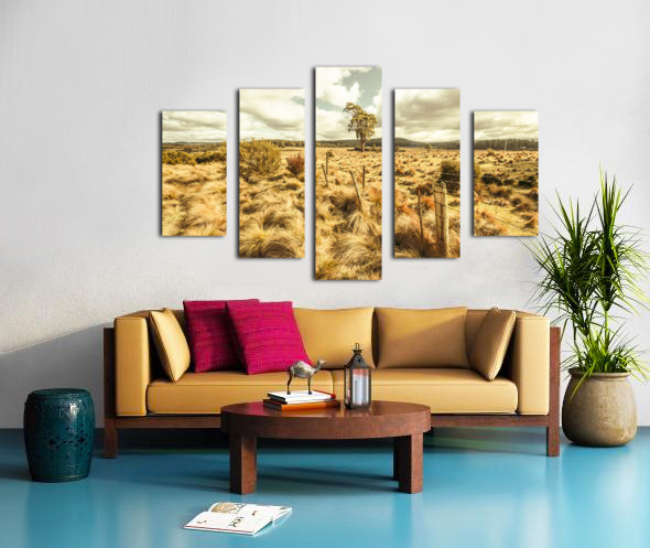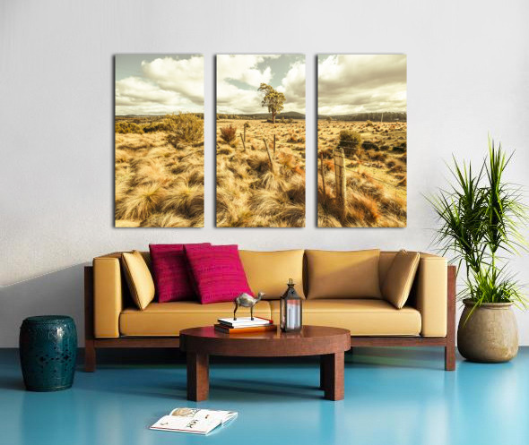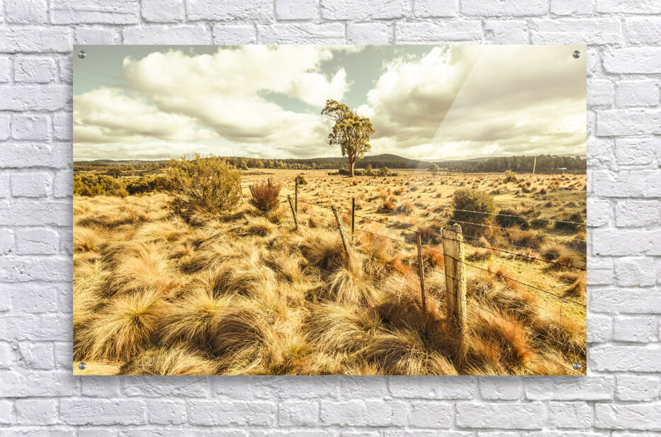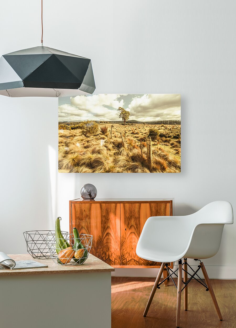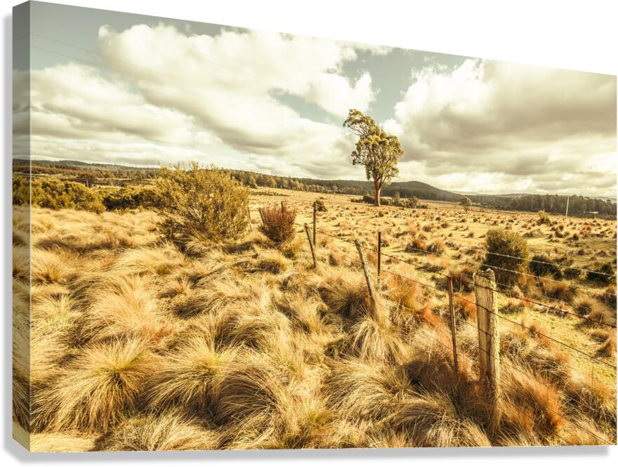 Fine art landscape on a scenic field of remote vast countryside in vibrant warm tones. Bronte Park Tasmania Australia