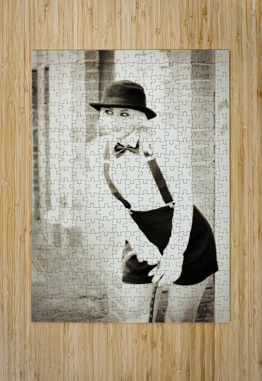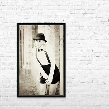 Soft Monotone Portrait Of A Cute Woman In Bowler Hat And Walking Cane Standing In The Streets Of A Retro Lifestyle