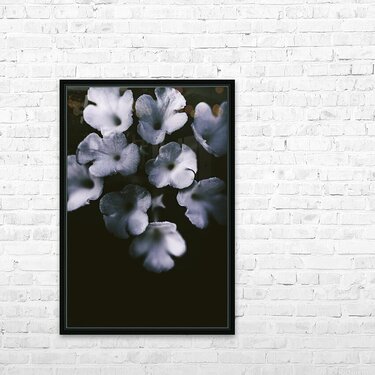Artistic dark blue flowers in night winter garden Picture Frame Printing