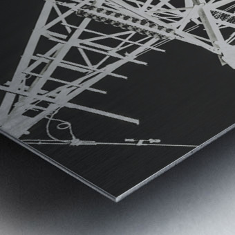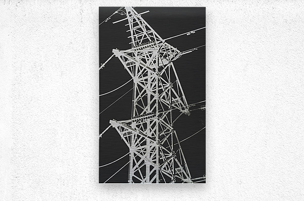 Creative building art in contemporary steel with a metal monochrome pylon in transmission inverse