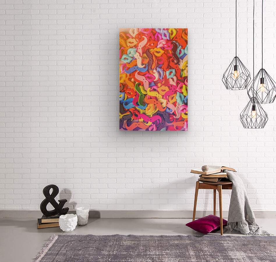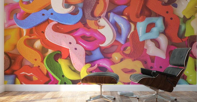 Pop art banter of caricature design as wood moes and lips both mix in a colourful collage of converse