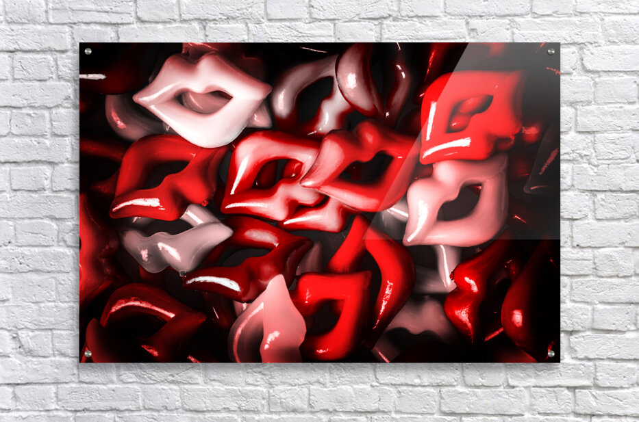 Girly design of makeup romances with lipstick kisses and red hot romances