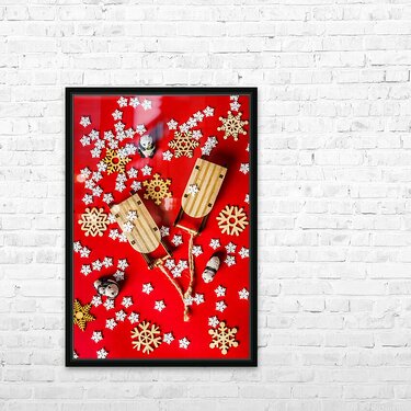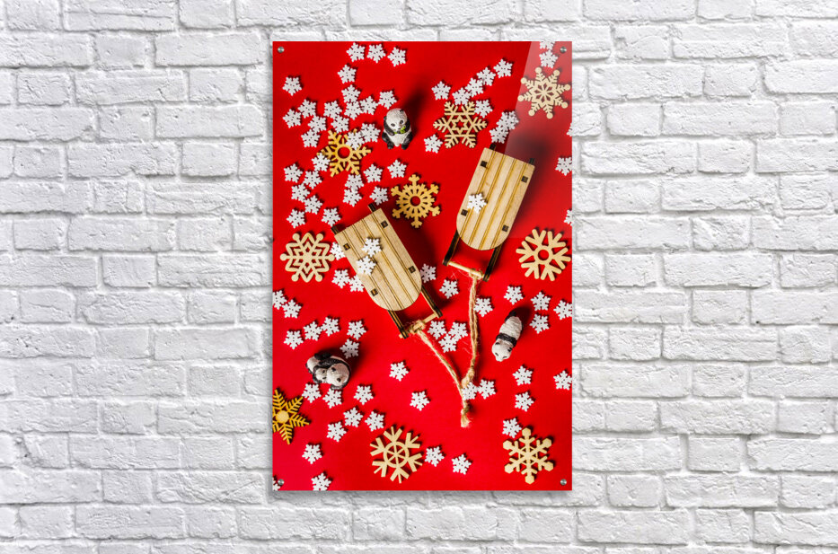 With sleds and snowflakes Frame print