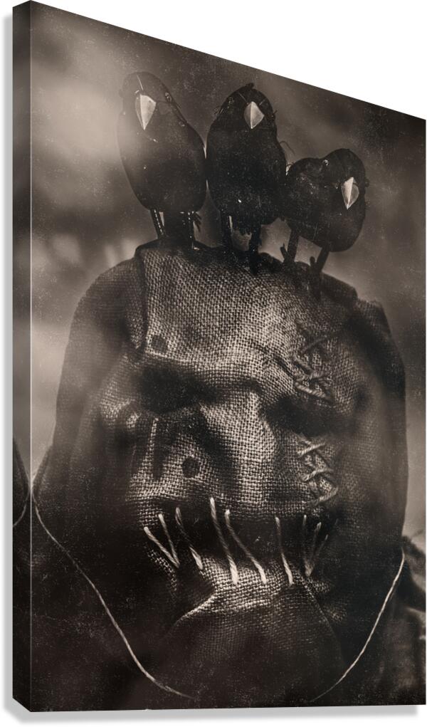 Working together a scarecrow and a triage of crows wreak havoc in b-grade vintage horror