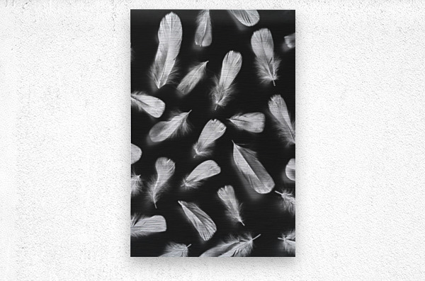 Creative scene of fluffy floating feathers abstracted in inversism styling on black background
