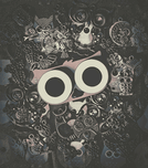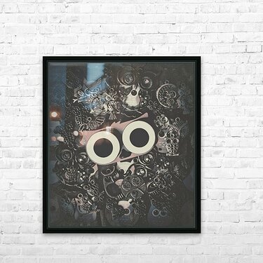 An industrial-style owl crafted from a collection of vintage and modern jewelry pieces stares out with wide white-rimmed eyes. The owls body is a dens...[+]