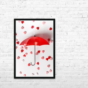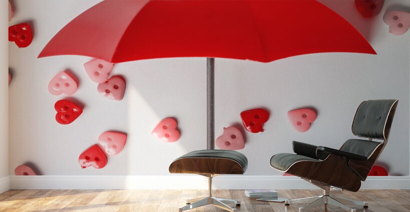 A buttoning of raining hearts fall in a modern scene of love reigning