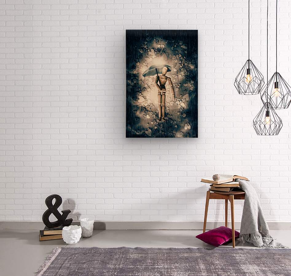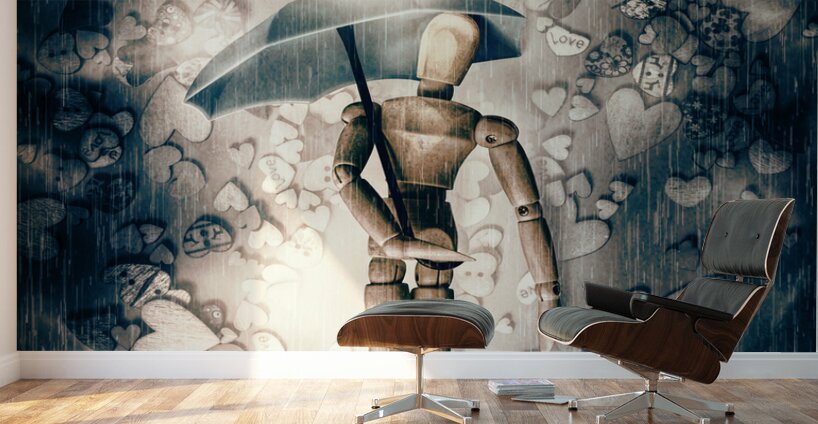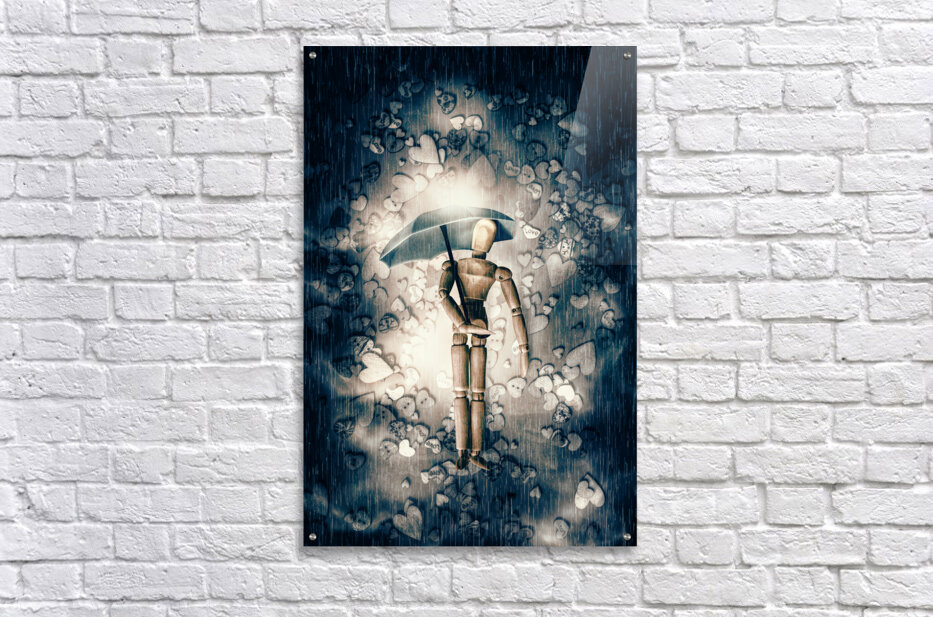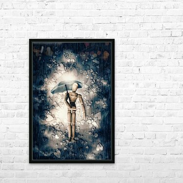 Rains silver lining see a figure basking in the rain of hearts and stormy sentiments creating lightness amongst the grey