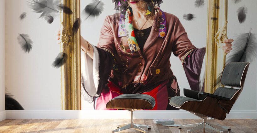 In avian accents a masquerading ball beauty moves perspectives and shift paradigms with the lightness of a feather