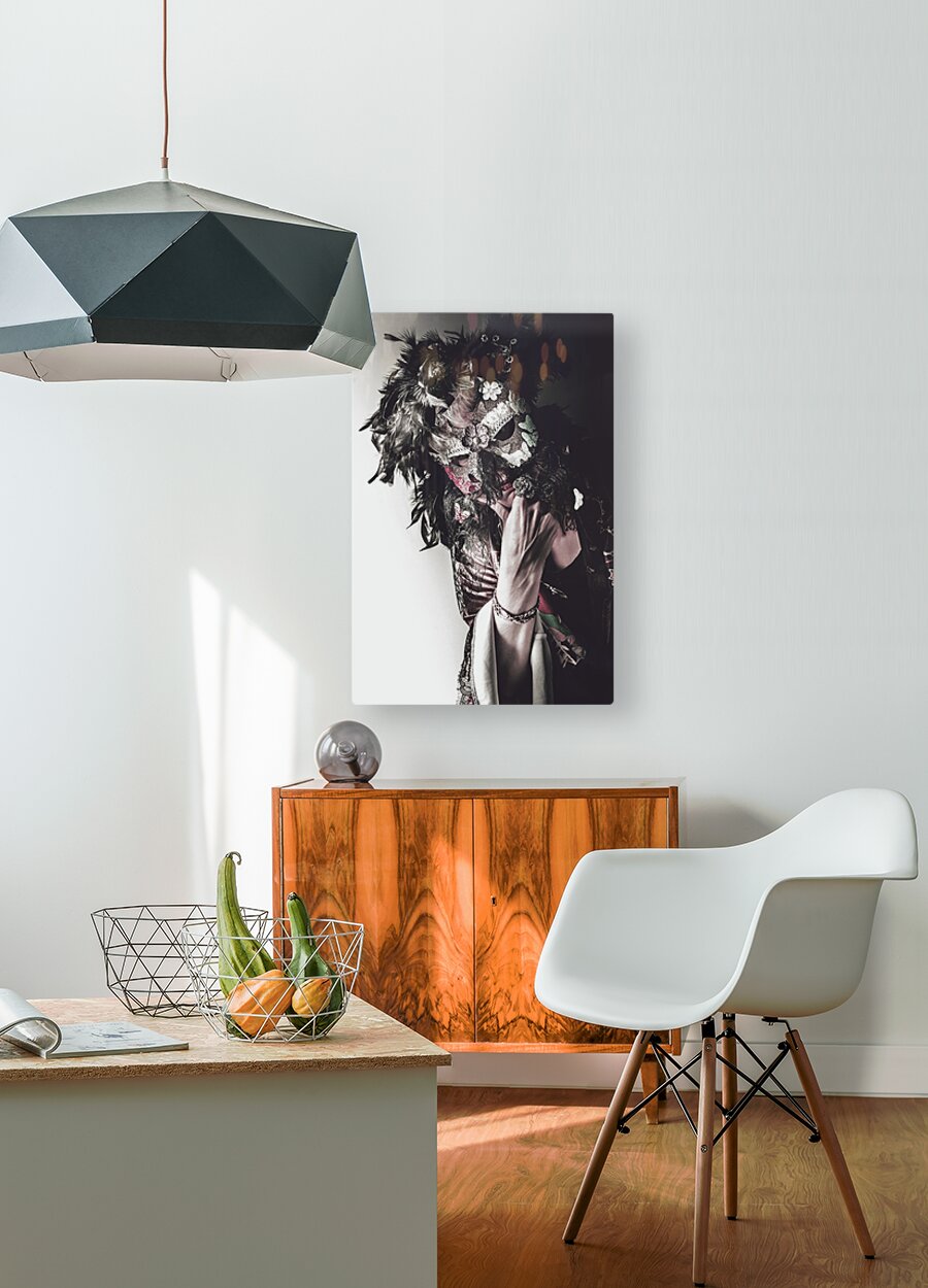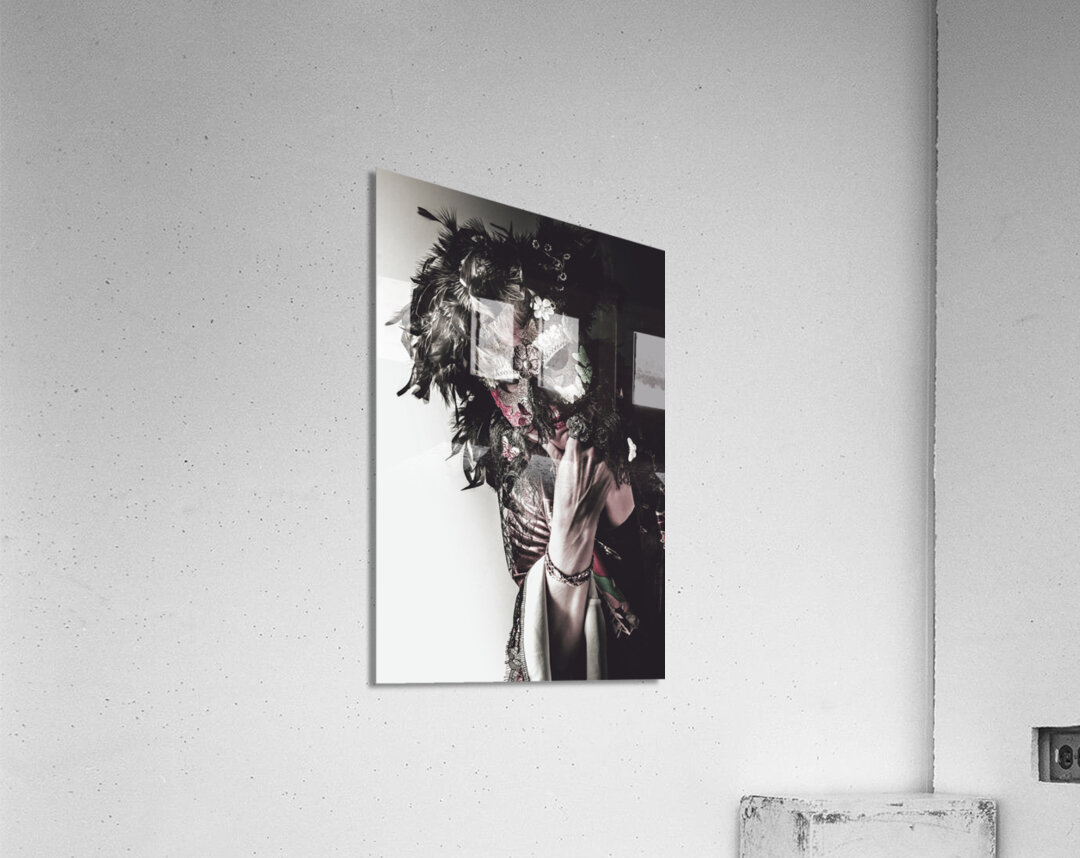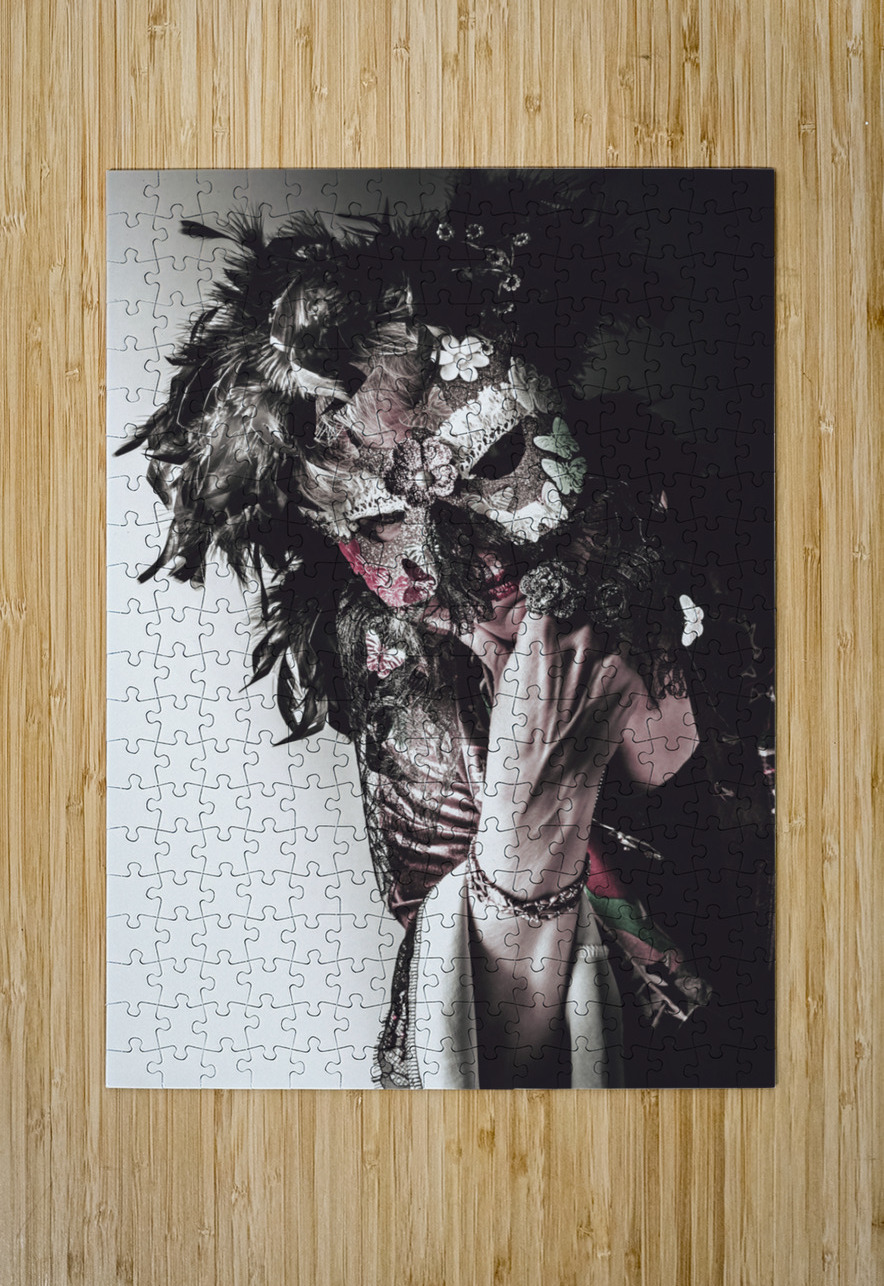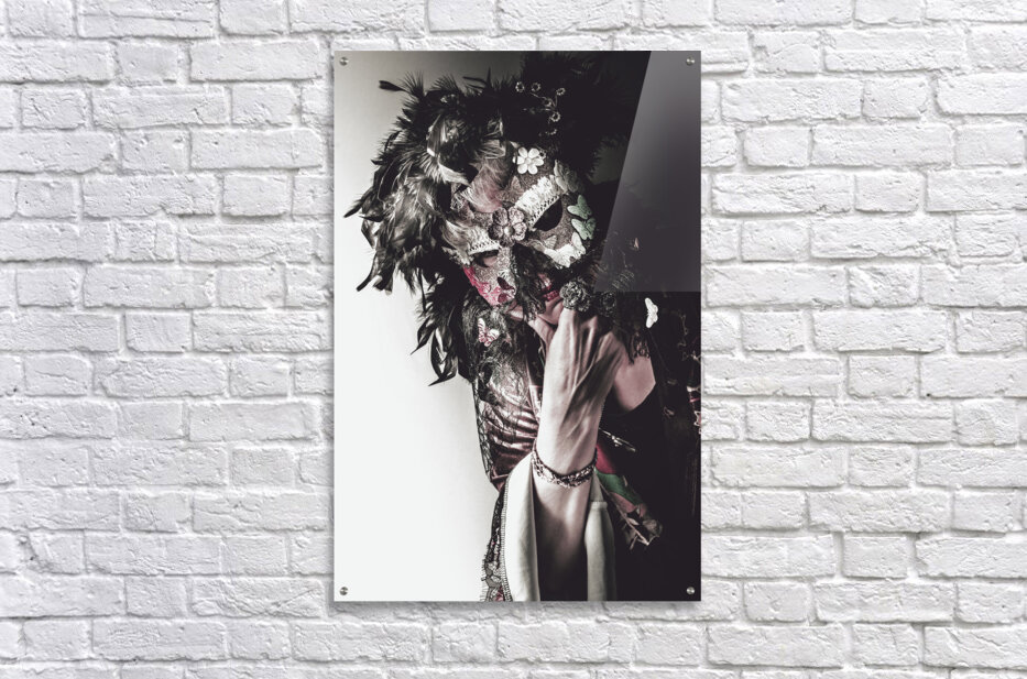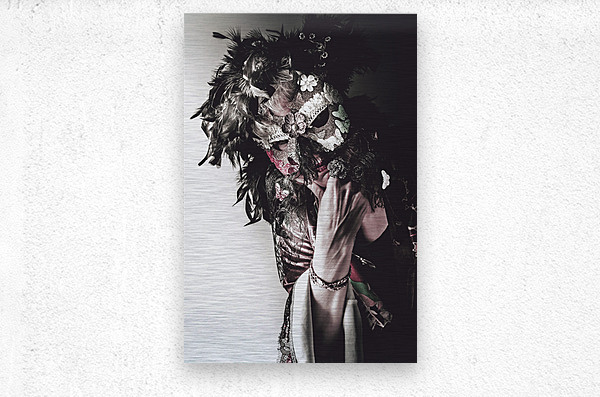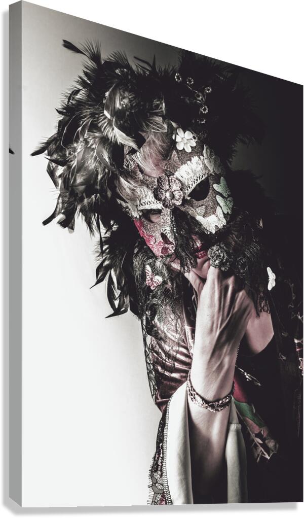 With shadows and feathering a masquerade mystery stands hidden yet seen in ever-so fancy dress styling