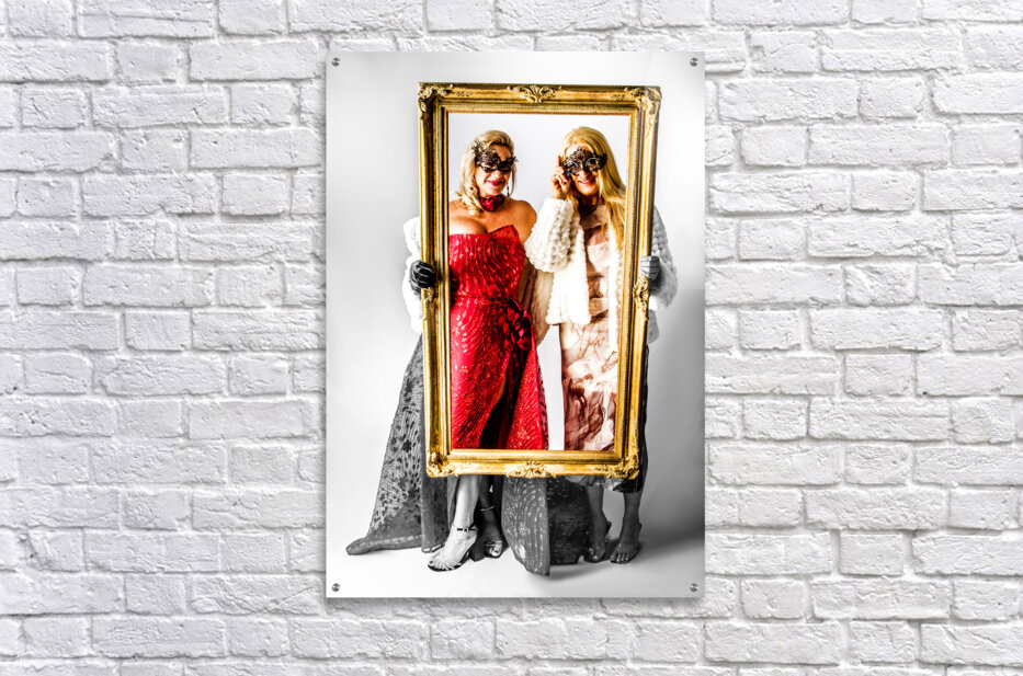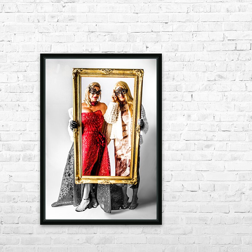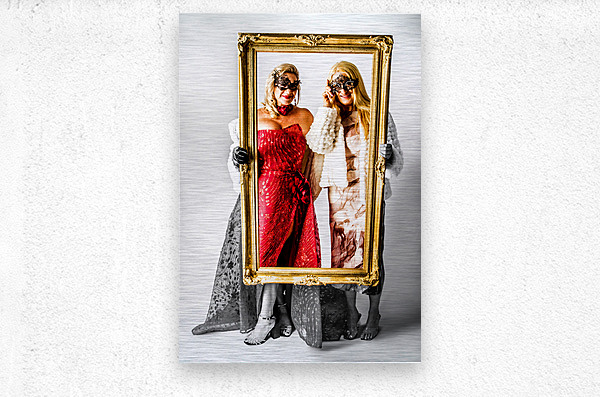 A stately scene of masquerading magnificence with elegant ladies framing a portrait in full colour style