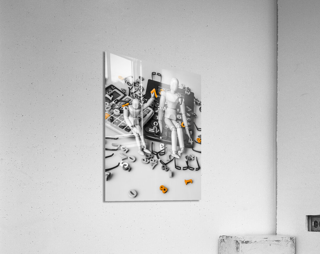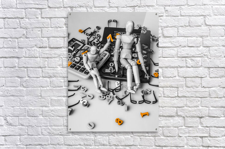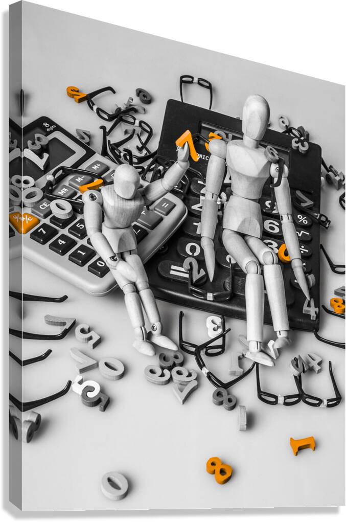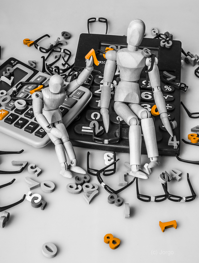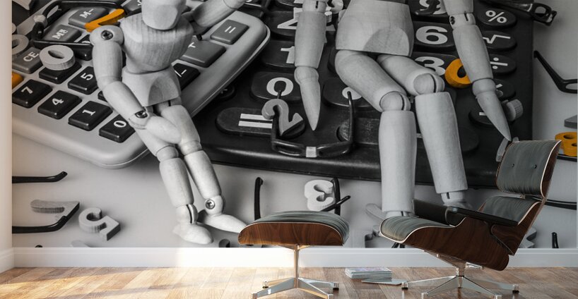 Plus one in a scene of economic advisory with wooden business people and a sum of solutions