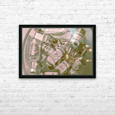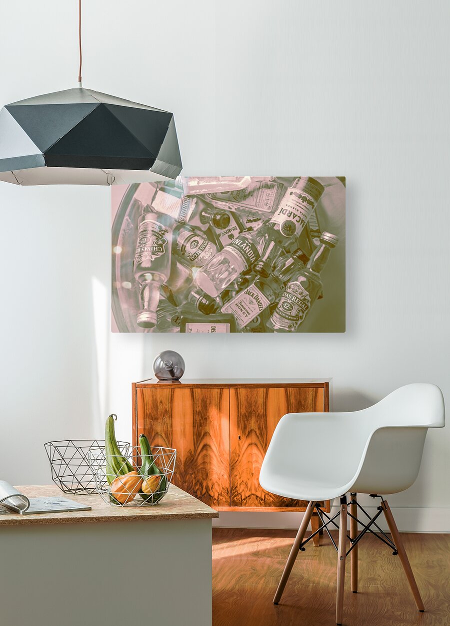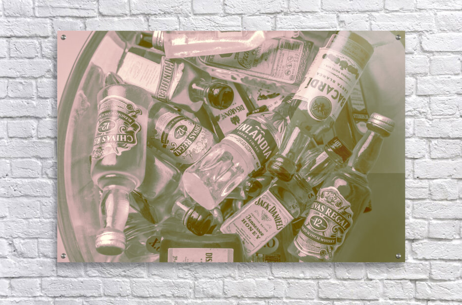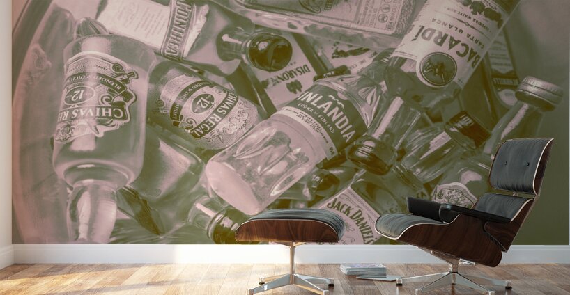 Old ornate liquor artwork on a mix of classic cocktail mixers shaken but not stirred