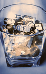 Glass of fun with cool composed classic cocktail mixers stacked in style