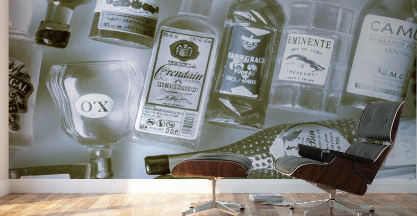 All class bar assortment of bottled sophistication with branded brandy whisky rum vodka and tequila