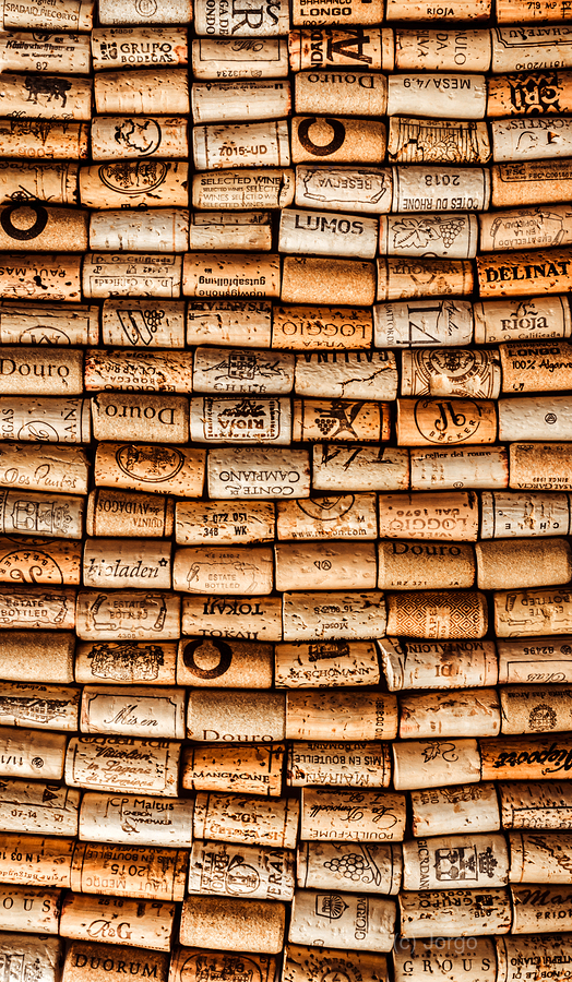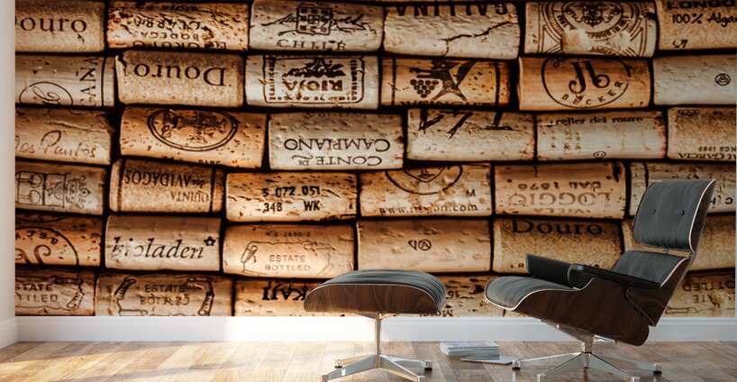 A vibrant assortment of vintage wine corks arranged on a wall creates an artistic display perfect for wine enthusiasts and decor lovers.