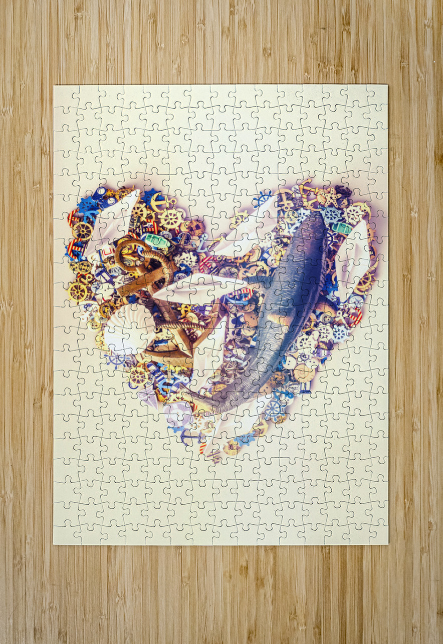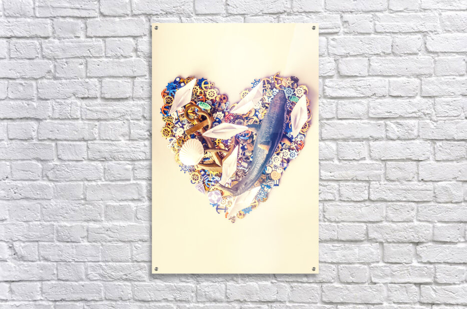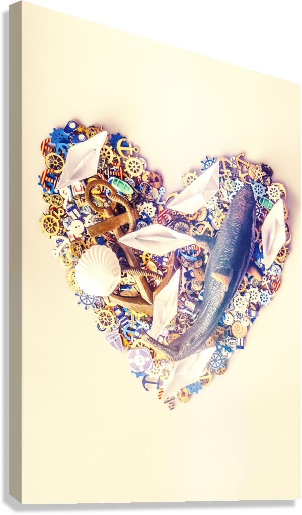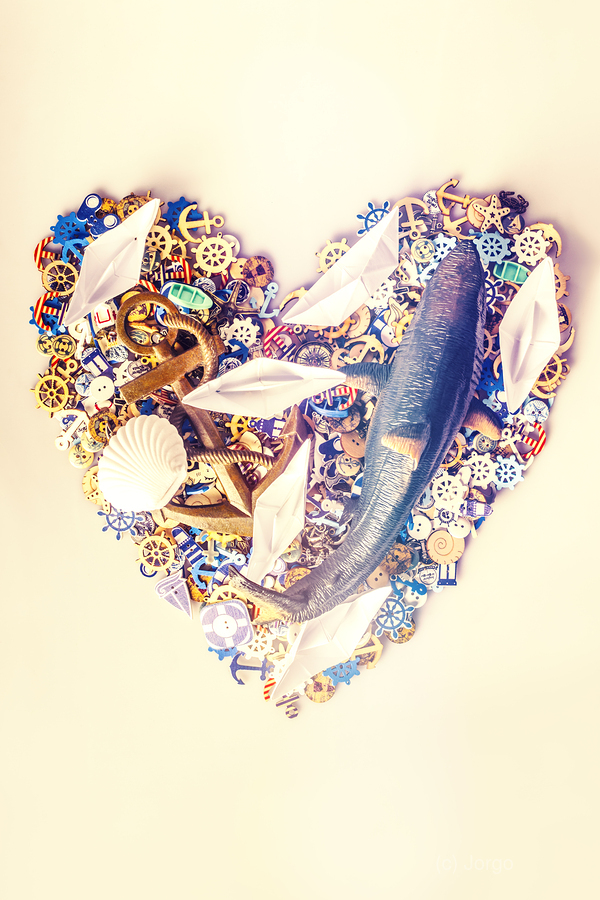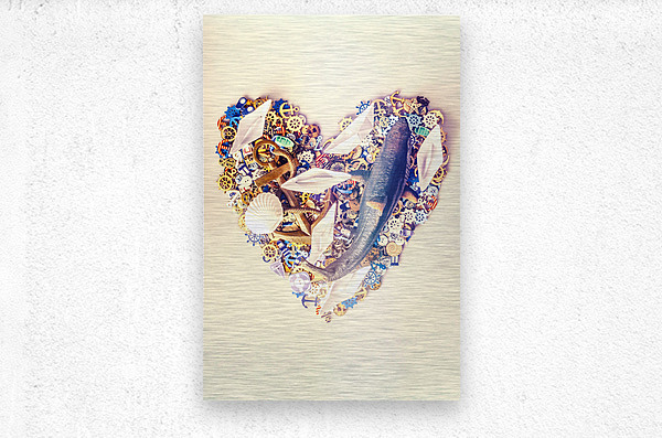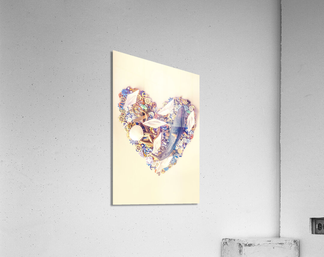 A scene of coastal love with a heart shape made from intricate ocean motifs pendants and toys