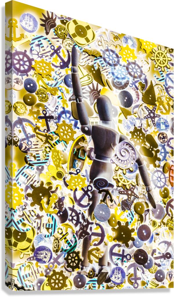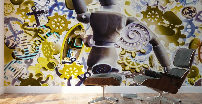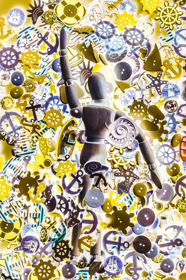 A artistic take in pop art inversism with pop art paddler toying around in a mashup of marine motifs