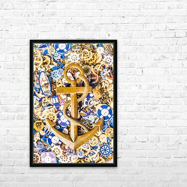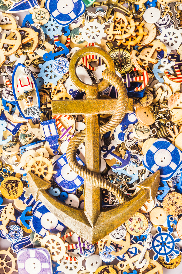 A icon abstract with a weighting of oceanic icons sealed with a sturdy sign of nautical anchorage