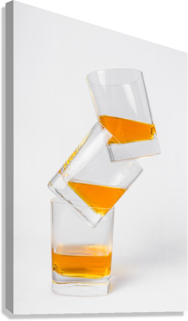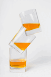 A balance in spirits with golden liquor stacked up in a tippy toppy stance