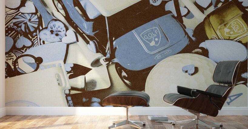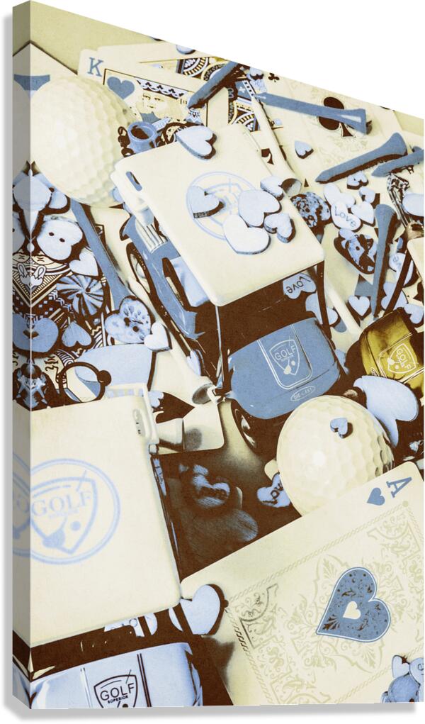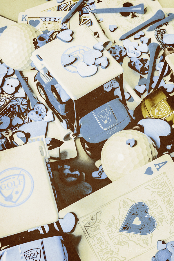 Golfer scene of nostalgia with a playout of golf games and romanticism abstracted in a blue take of playful yearning