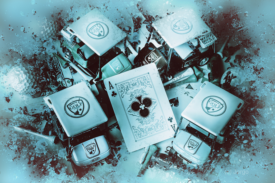 The ace of clubs shine through the rain hail and shine in a creative table play on golfing in the rain