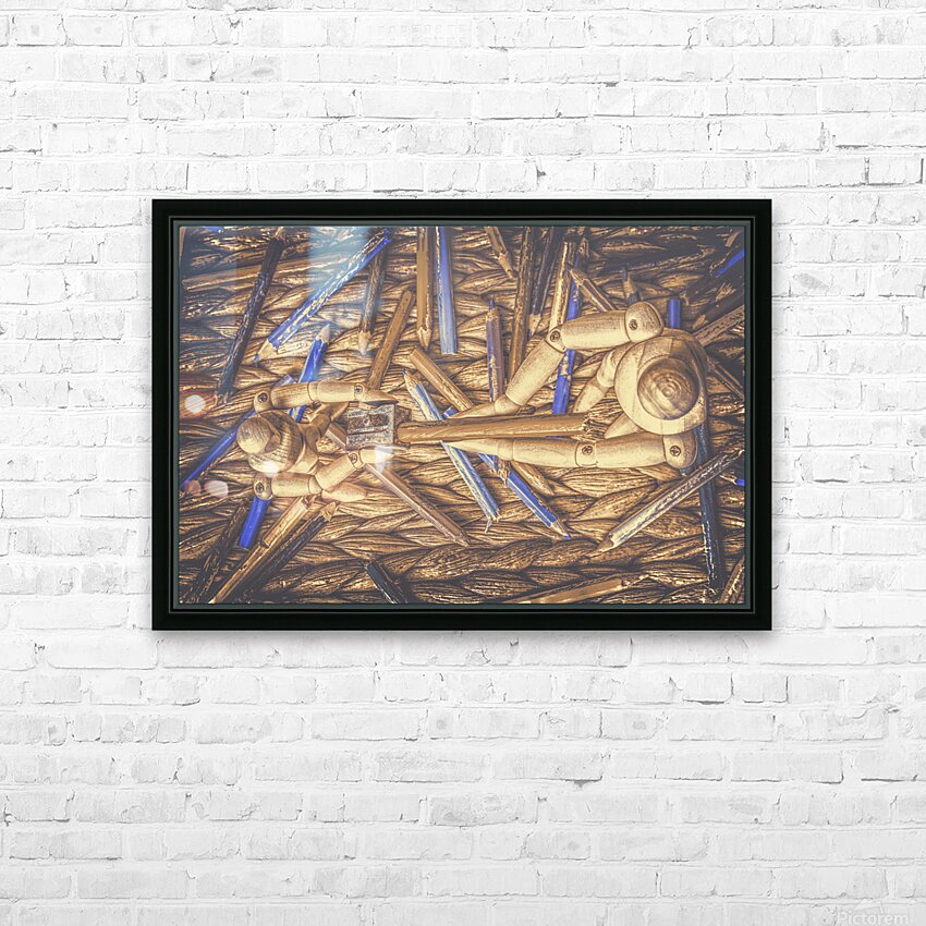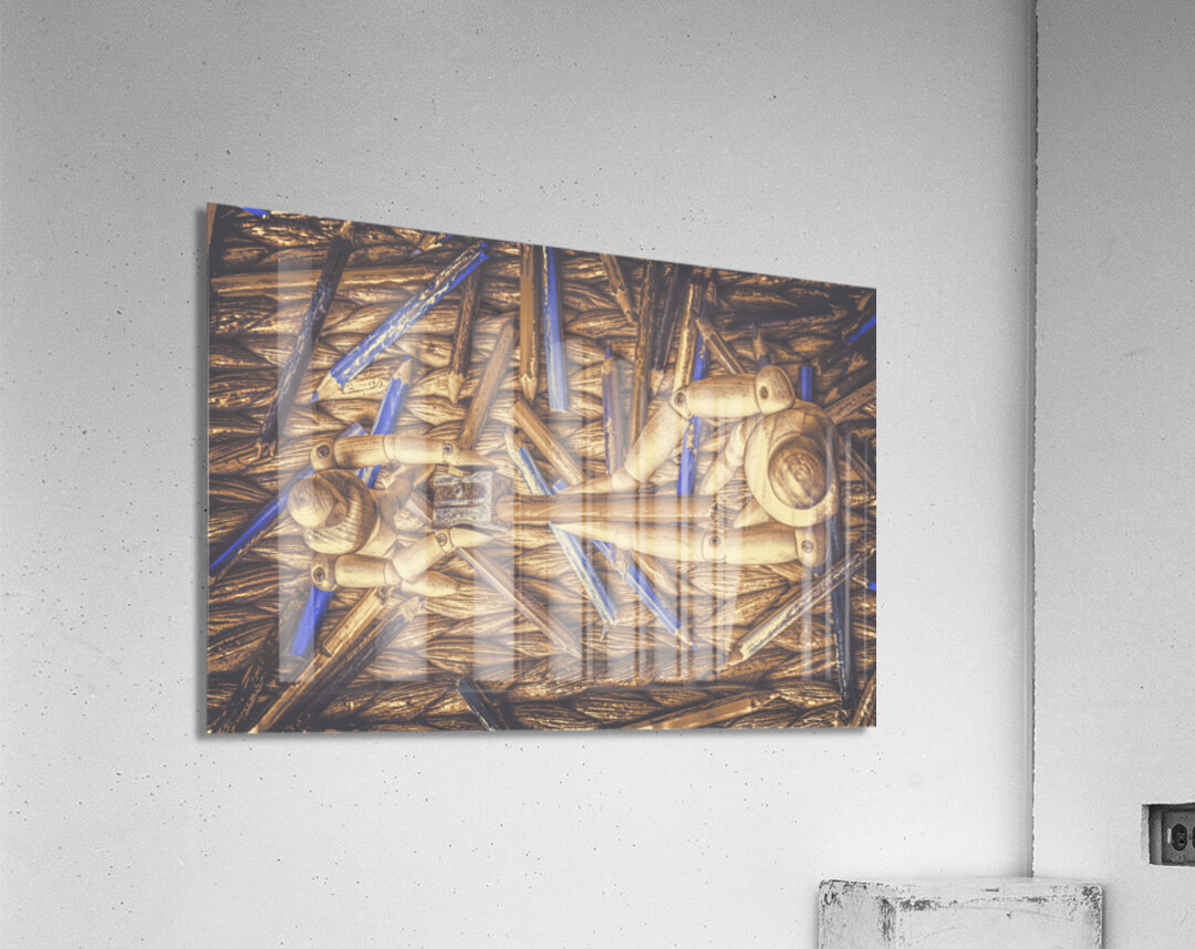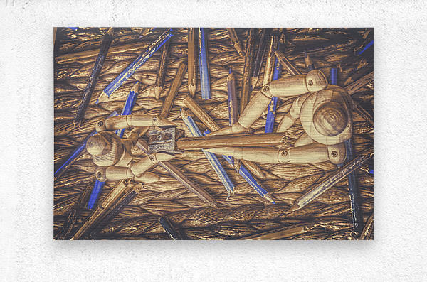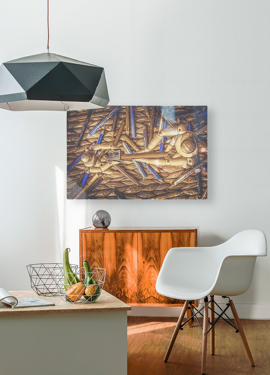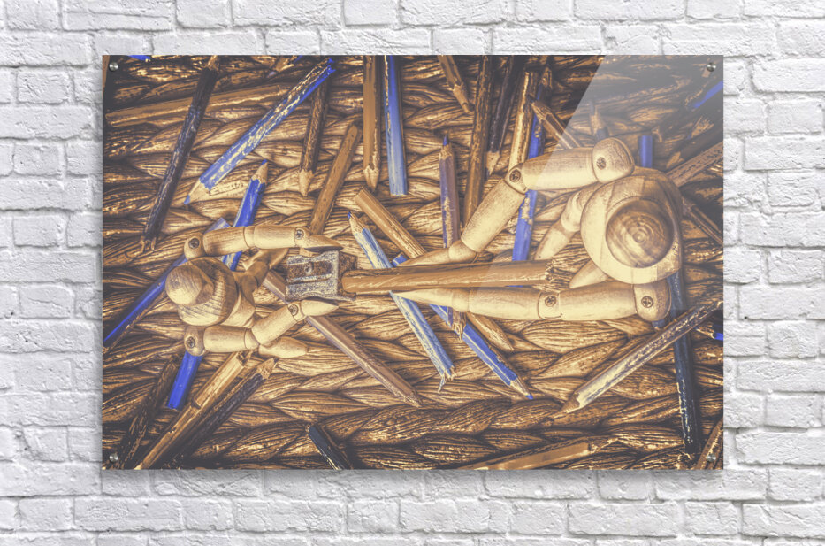 A artistic scene of fine art collaboration as wooden art mannequin work as a team to sharpen their art skills