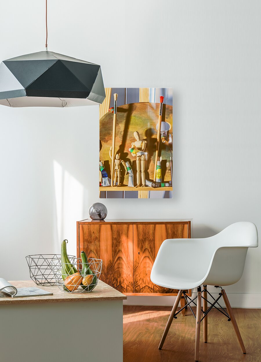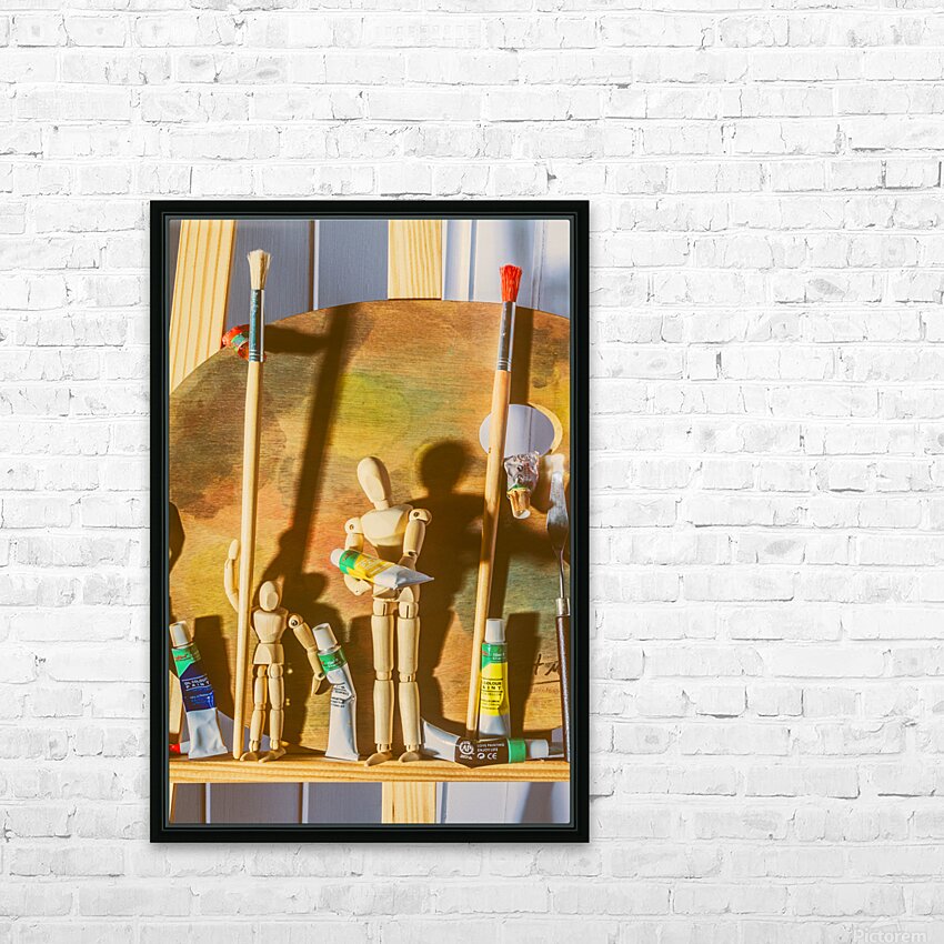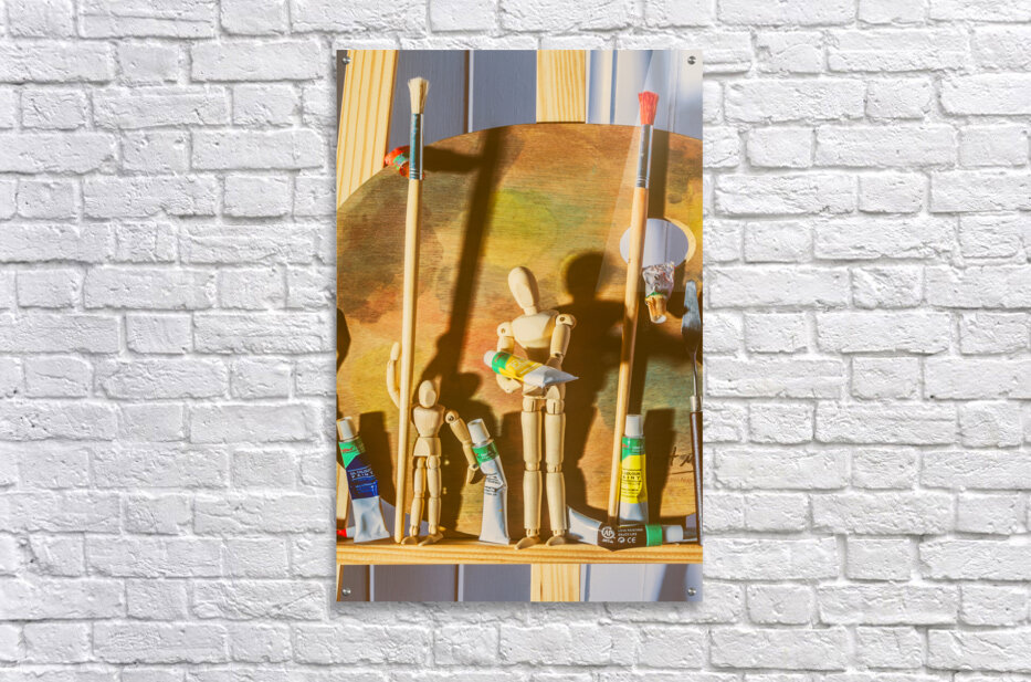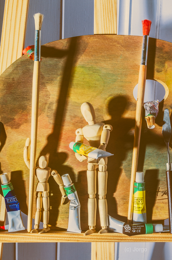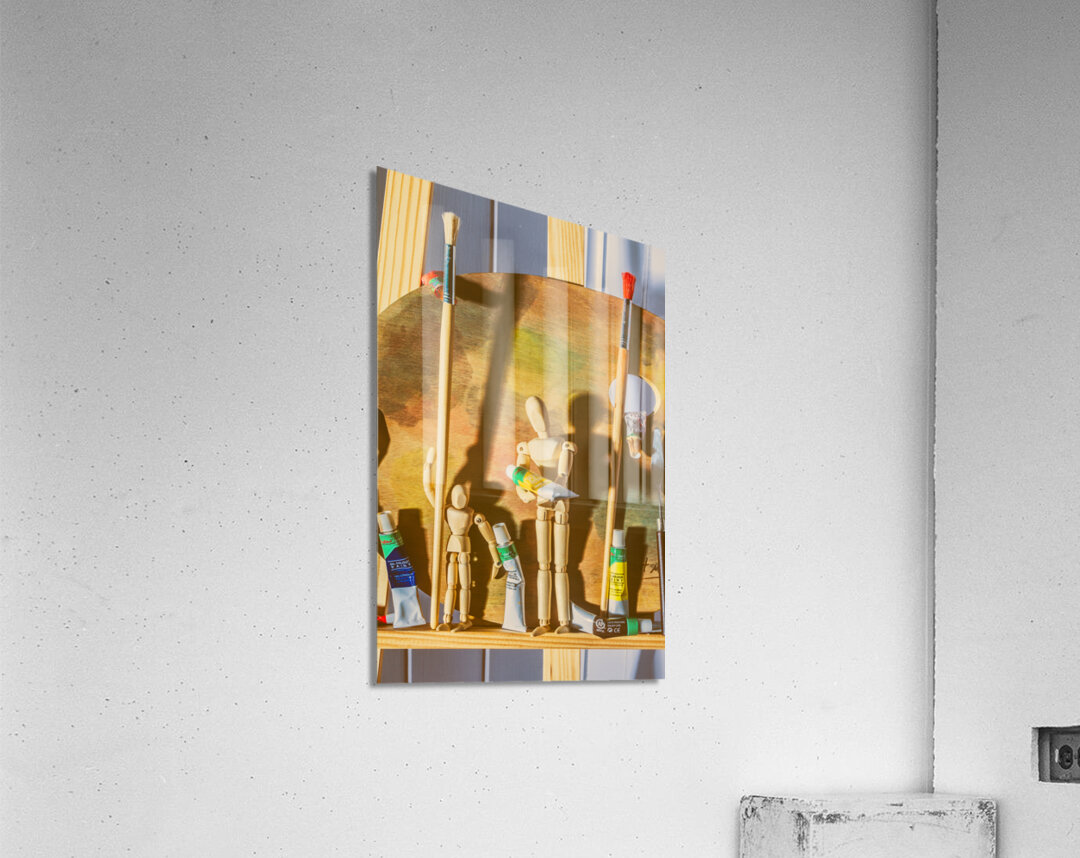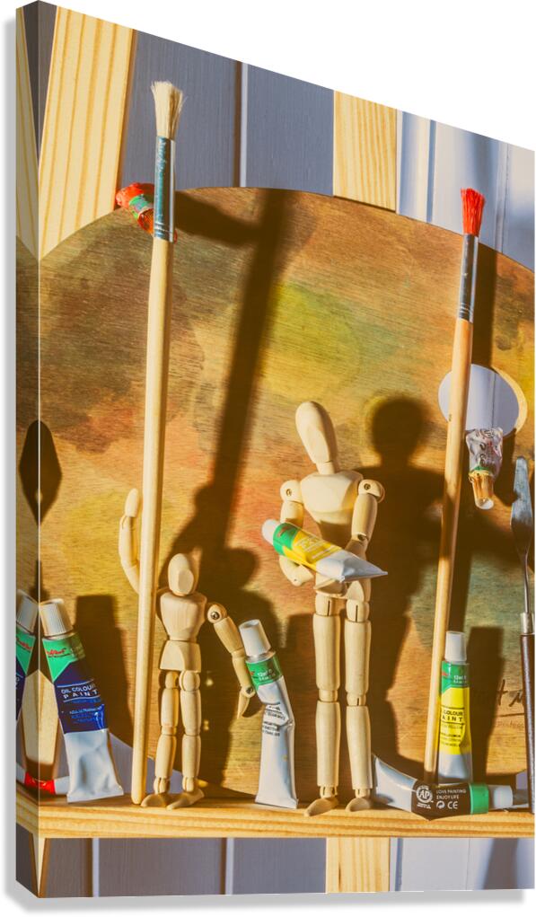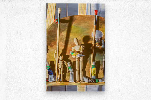 Art school played out in a scene of artist dolls and paints and brushes served on a pallet of art school fun