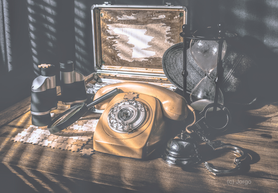 A murder mystery in the solving with a scene of a inspectors desk storytelling a crime drama of film noir mystery