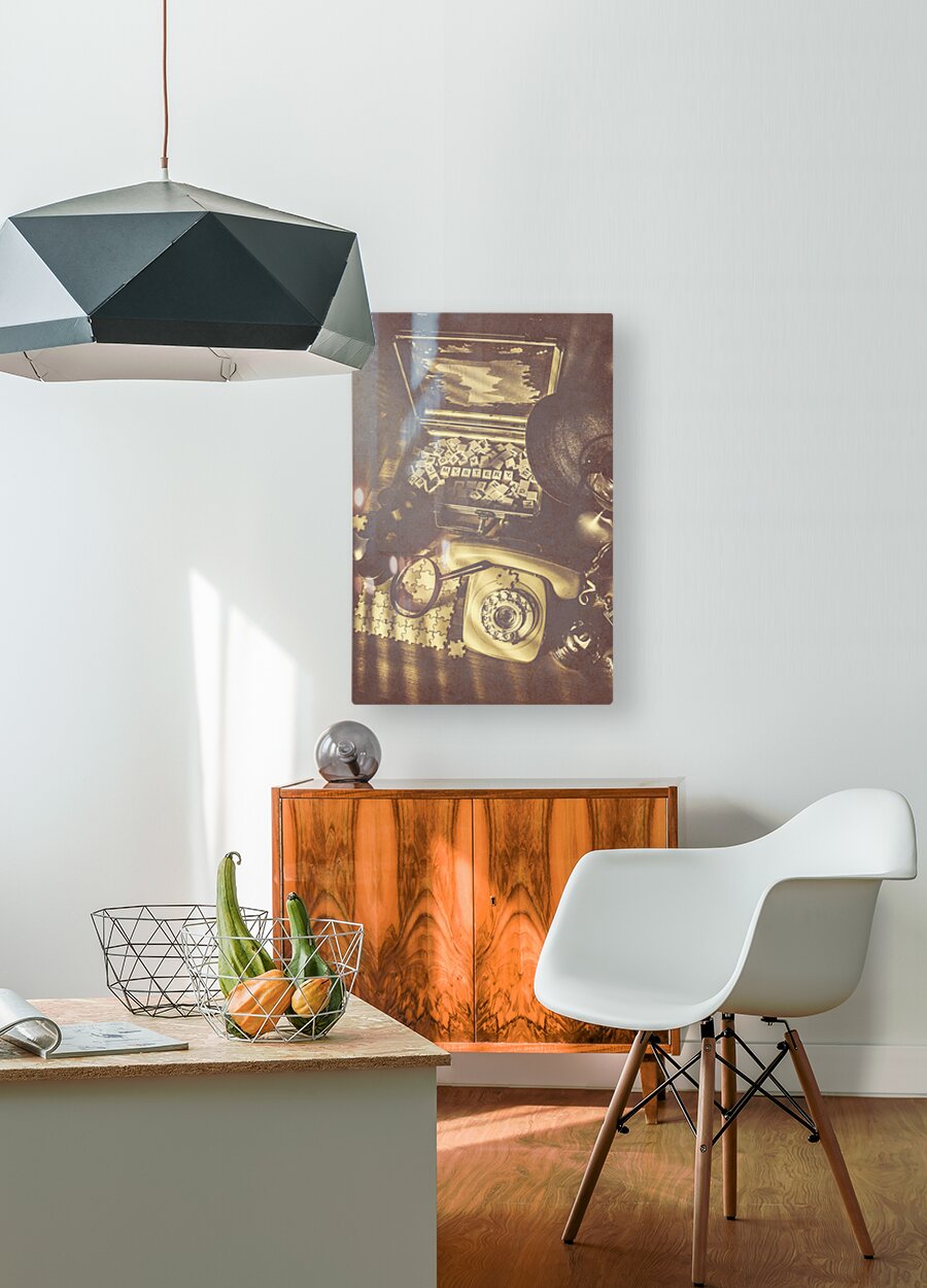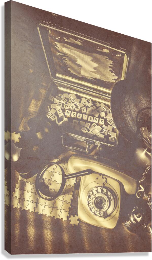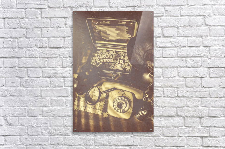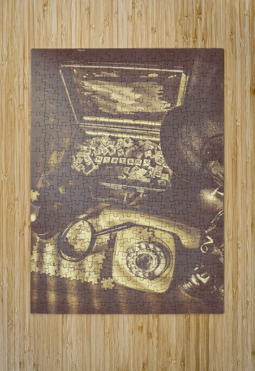 An old crime scene investigation at the headquarters of a private eye investigator with missing puzzle pieces of a open case mystery