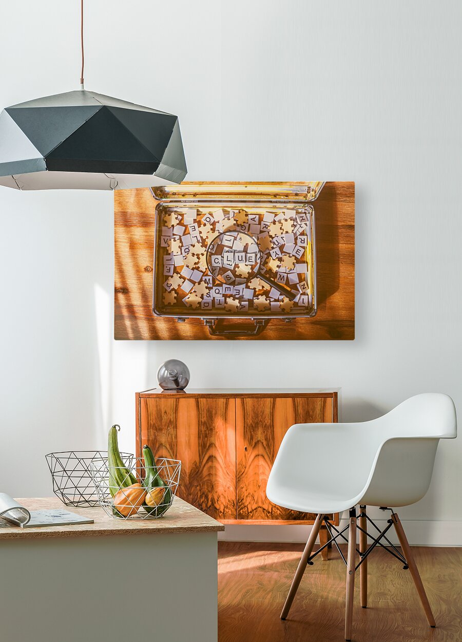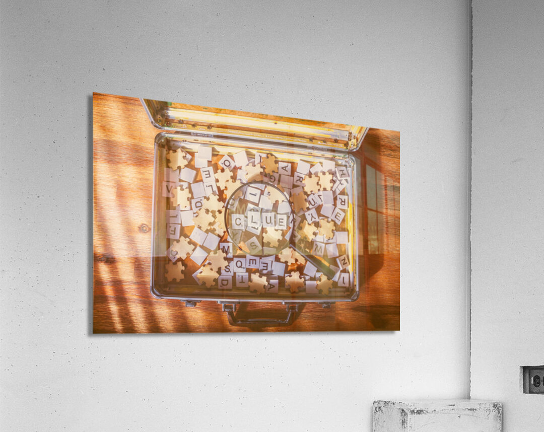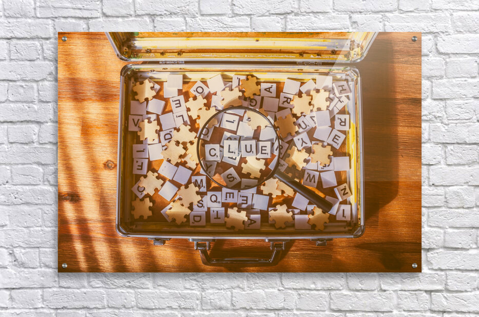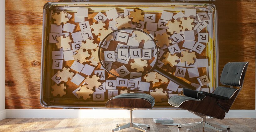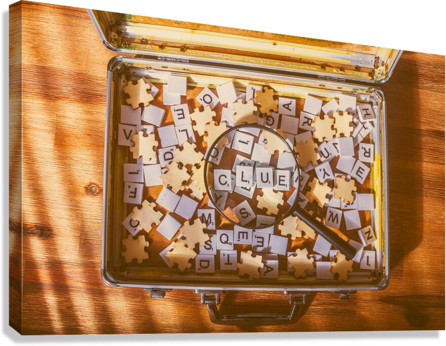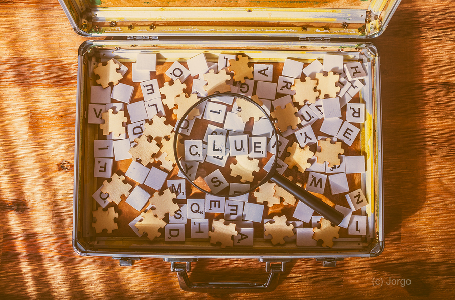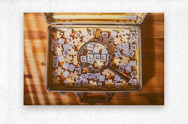 Puzzle pieces and letter jumbles riddle out a scene of CSI investigation of a open case