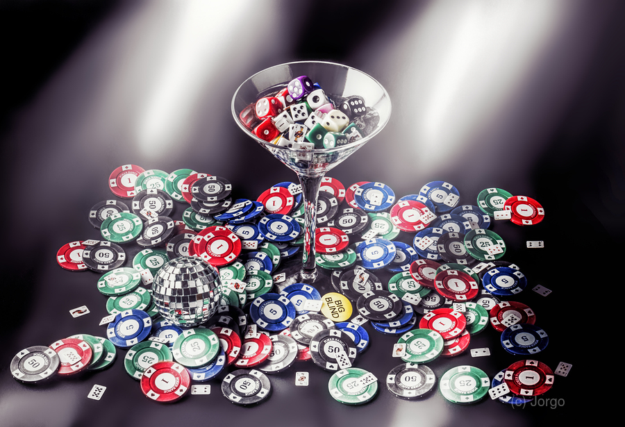 A play on table games with cocktails and lucky rolls under the glint and glimmer of casino fun