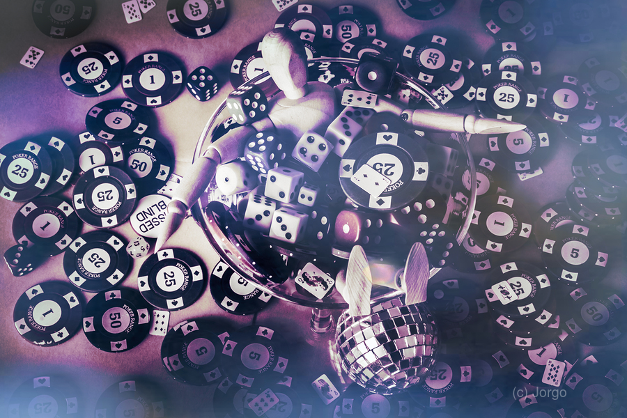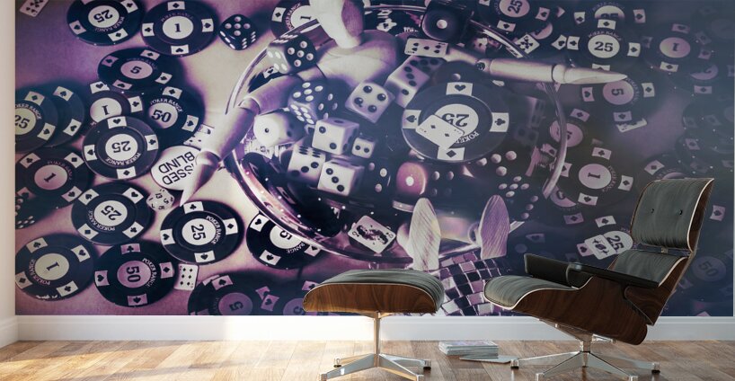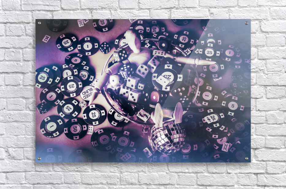A bar bathing scene of gambling fun with casino cocktail bath of dice and gaming chips