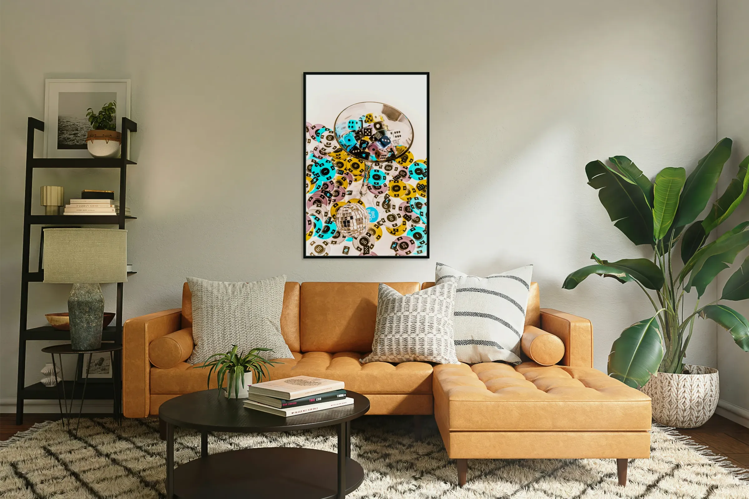 Retro creativity in a scene of luxury liquor and gaming table delights