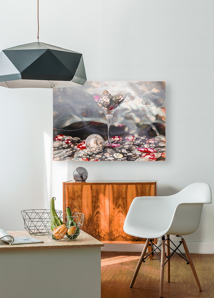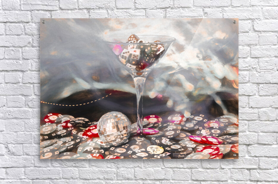 Oil painting esque still-life on a cocktail of dice and gambling games abstracted