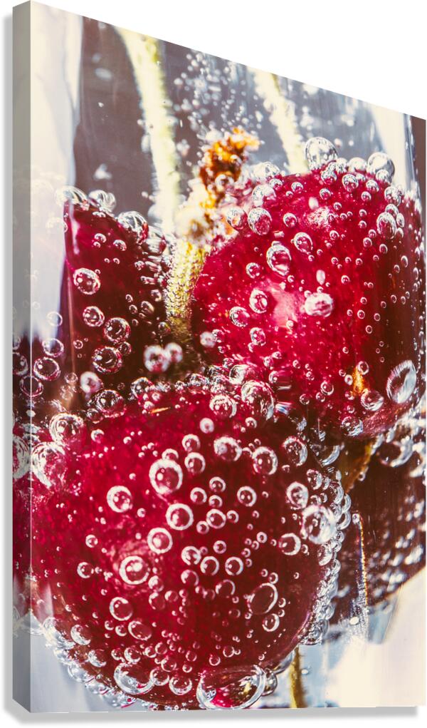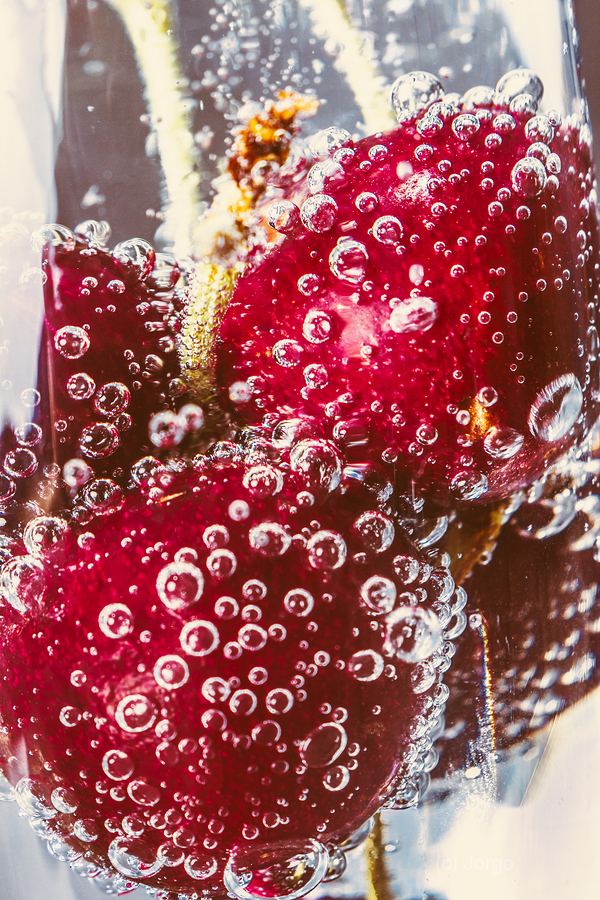Macro photography on a dunking of cherries in a wine glass of celebratory fashioning