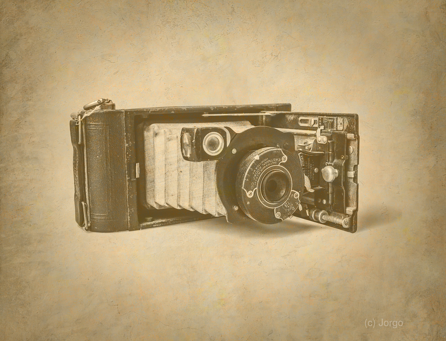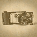 A classic folding bellows camera rests nostalgically on an aged surface evoking the timeworn beauty of unfolding history