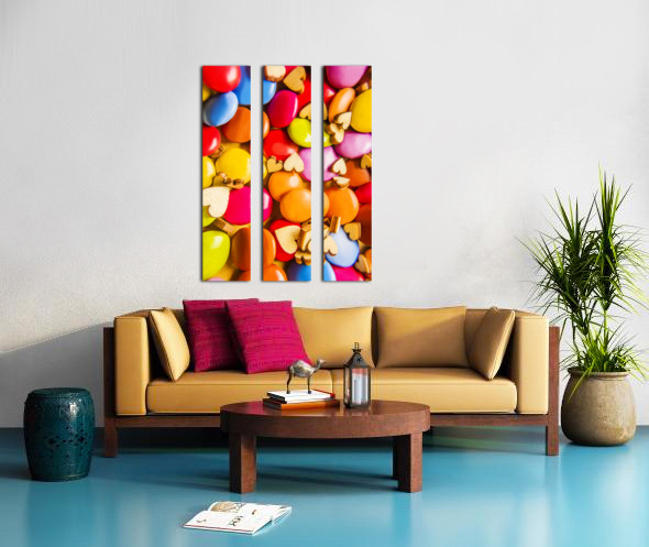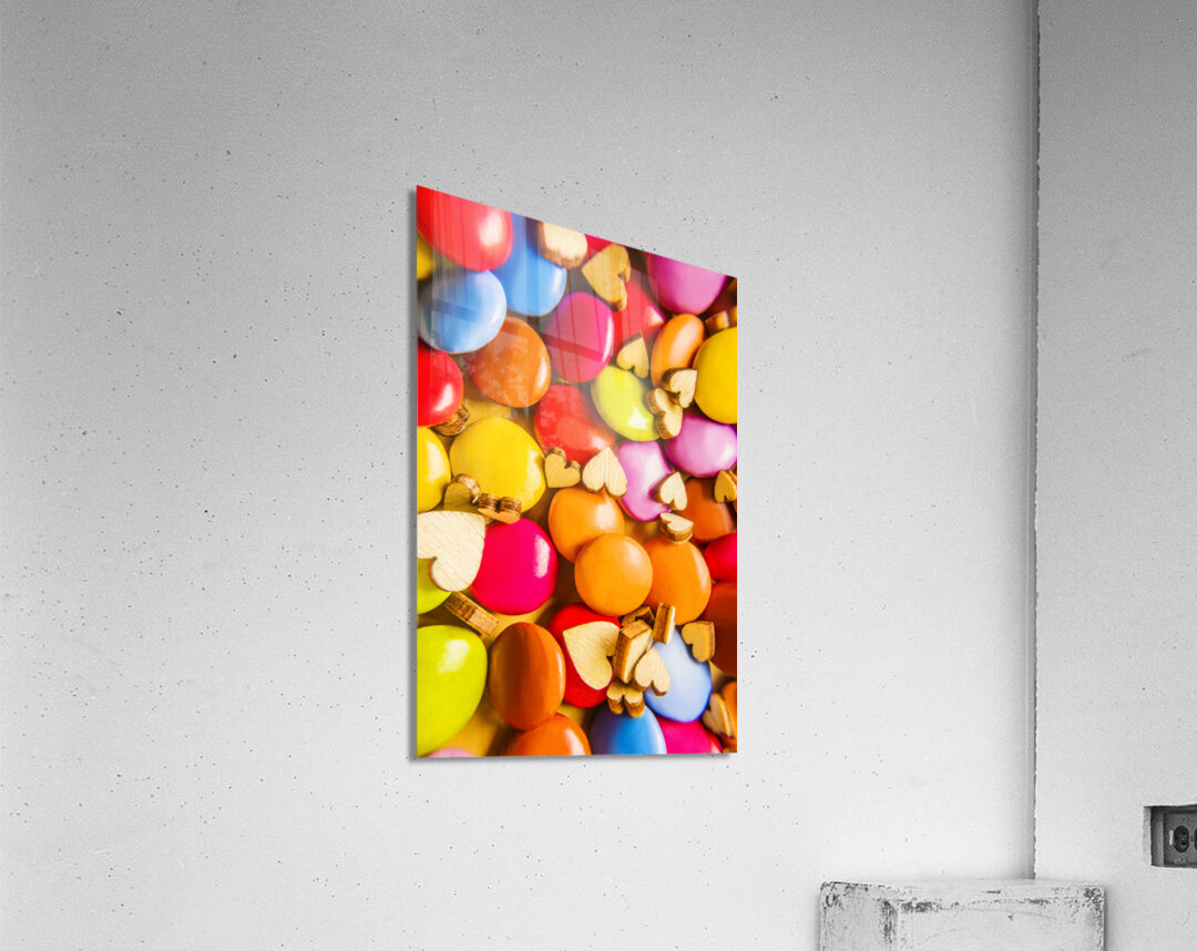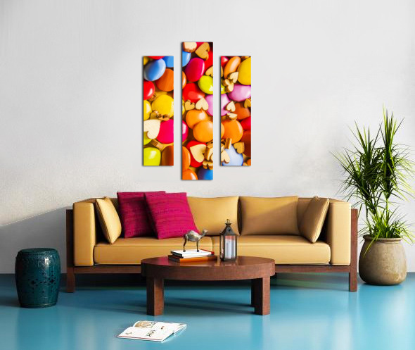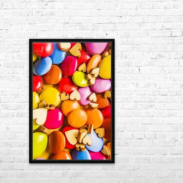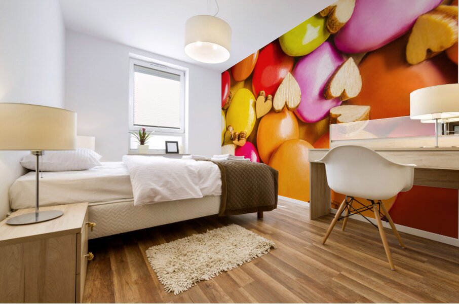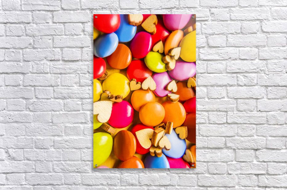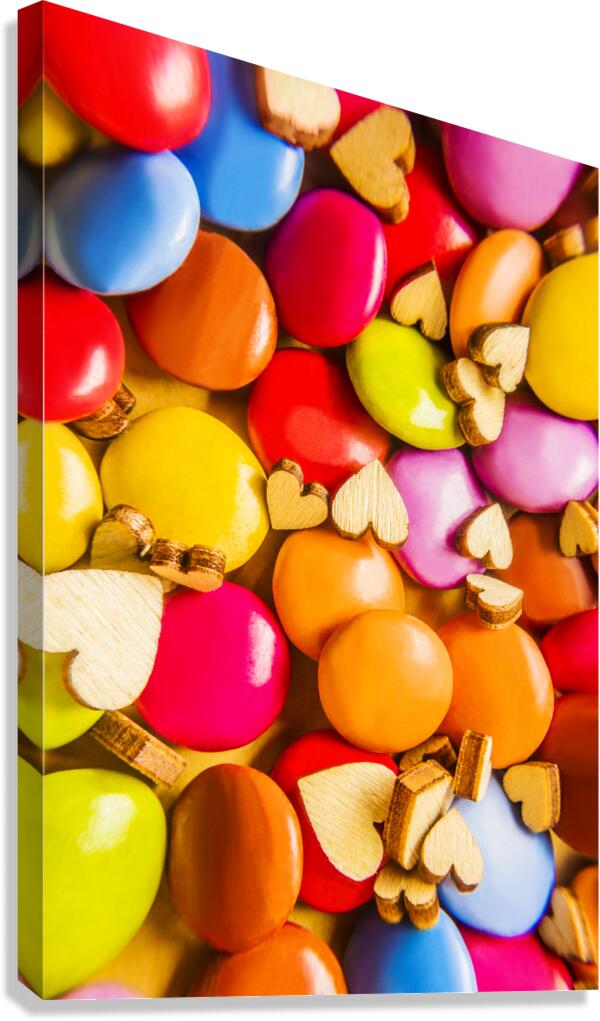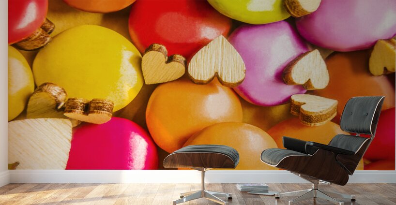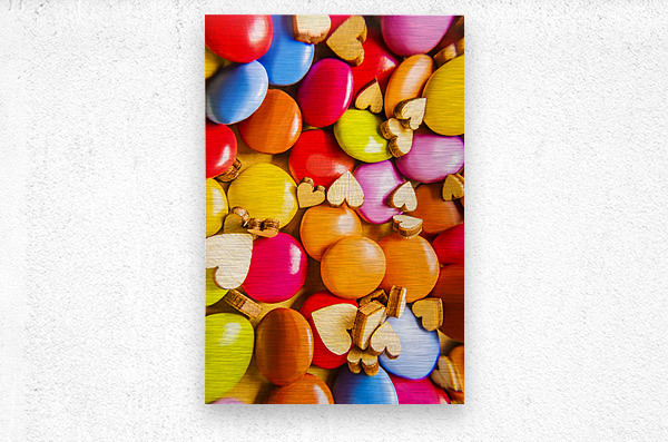 A complex color abstract of hearts and chocolate candy in modern sweet sentiments