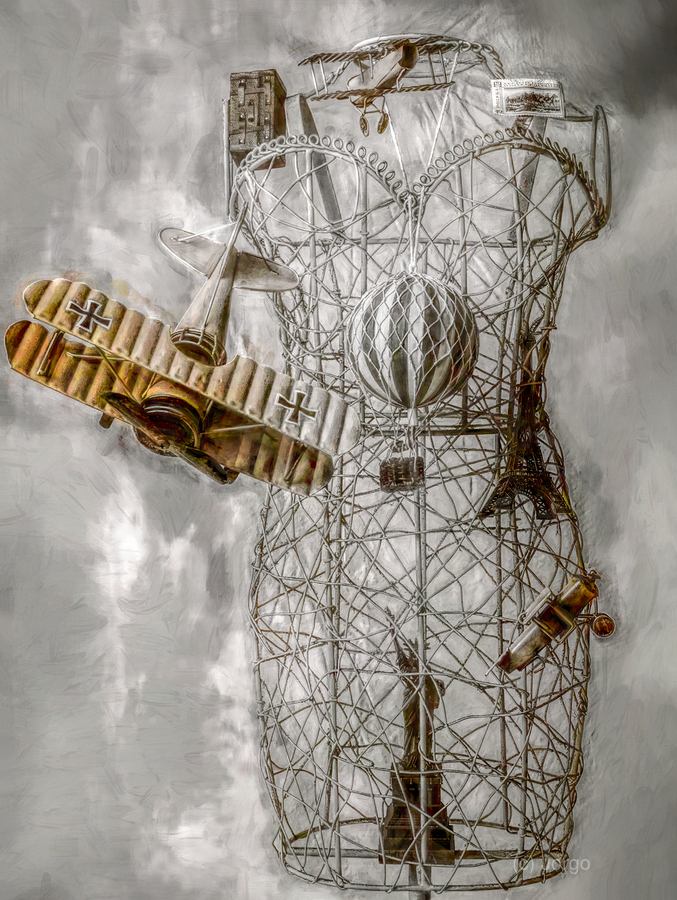 A painterly portrayal of air bound fictions with flights of fantasy and frames of fairytale fashion with travelling icons and steampunk machinations