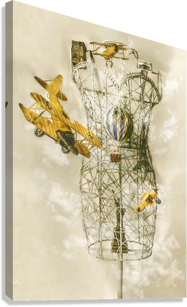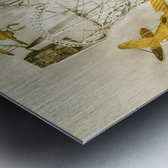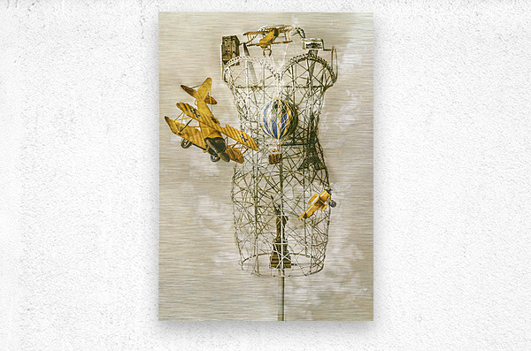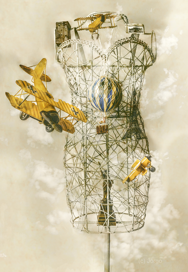 A dressed-up dream of steampunk machination with airbound aviation travelling around a wire-frame of old world landmarks